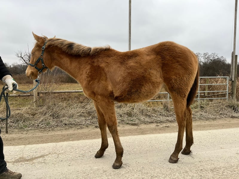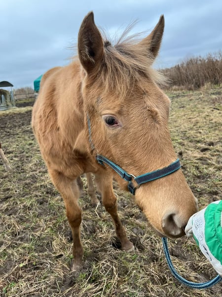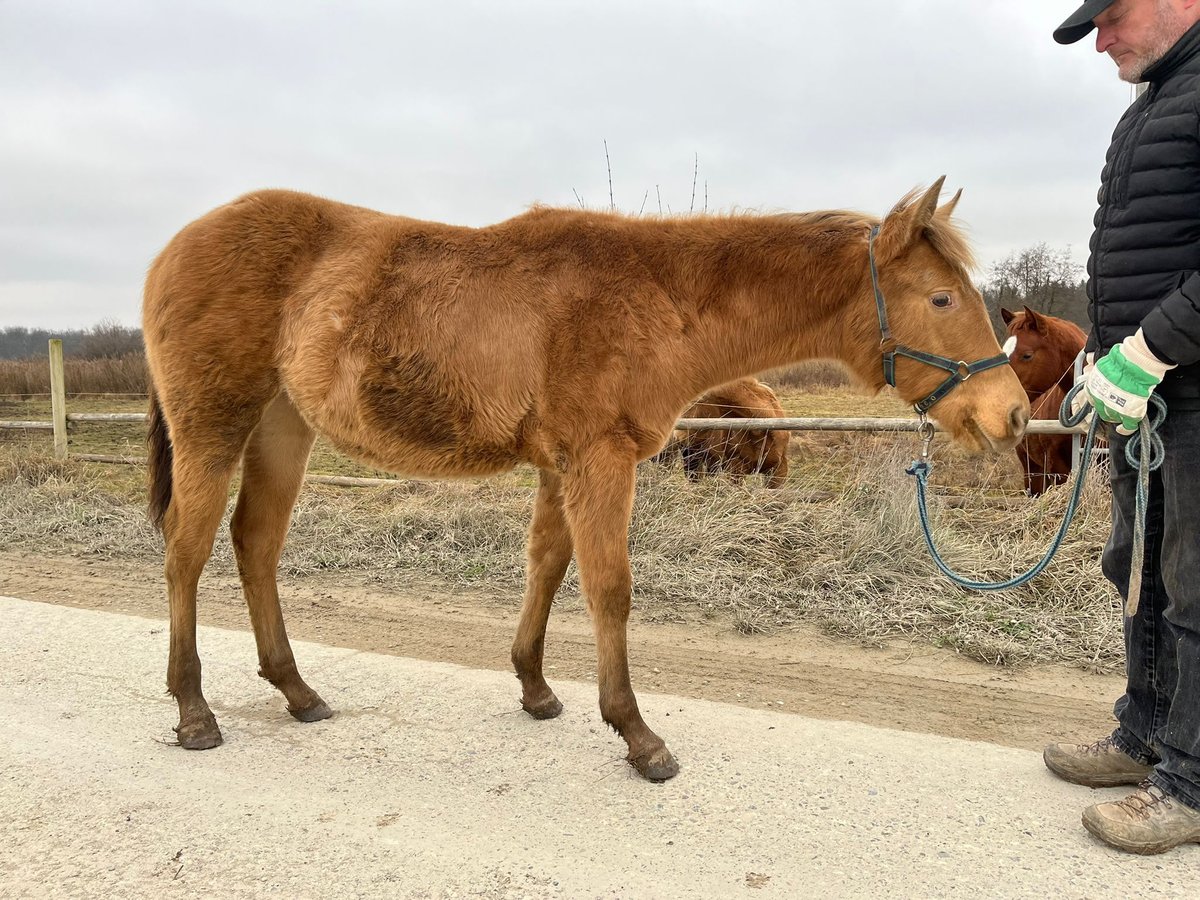 Lady In Champagne - eine außergewöhnlich hübsche Quarter Horse Stute in der seltenen Farbe Amber Champagne, geboren am 08. April 2025. Mit einem geschätzten Endmaß von ca. 150 cm, ihrem korrekten, kompakten Gebäude, der tollen Bemuskelung und ihrem liebevollen Ausdruck ist sie ein echter Eyecatcher - sowohl optisch als auch charakterlich. Als 1a-Prämienfohlen und mit einem 6. Platz beim DQHA Fohlenchampionat 2025 bringt sie bereits jetzt beste Voraussetzungen für eine erfolgreiche Zukunft mit. Sie stammt aus einer hervorragenden Allround-Linie, die viele Möglichkeiten offenlässt - egal ob Sport, Turnier oder Freizeit. Lady In Champagne wächst im Herdenverband auf großzügigen Koppeln auf und zeigt sich dort ausgeglichen, neugierig und sehr menschenbezogen. Sie ist verschmust, cool im Kopf, bewegungsfreudig und lernt schnell. Ihr aufgewecktes Temperament ist dabei stets angenehm und ausgeglichen - ein echtes Goldstück mit klarem Köpfchen. Sie kennt Hufschmied und Tierarzt, wird täglich gehändelt und ist halfterführig. Anhängerfahren, Hufegeben, Putzen sowie das Mitlaufen als Handpferd im Gelände sind für sie bereits vertraut. Lady In Champagne ist gesund, regelmäßig entwurmt, bei Abgabe altersgerecht geimpft und genetisch frei (5-Panel und MHYM n/n). Der Farbtest liegt ebenfalls vor. Ob als späterer Freizeitpartner oder sportlicher Allrounder - diese junge Stute vereint Charme, Qualität und eine auffällige Farbe zu einem rundum gelungenen Gesamtpaket. Sie wird mit vollständigen AQHA-Papieren und Equidenpass in fördernde Hände abgegeben. Ein bezaubernder Youngster mit viel Potenzial - bereit, Herzen zu erobern.