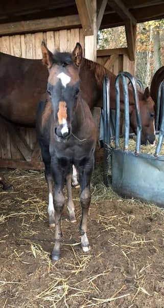 K Ka Kangaroo ist ein harmonischer verschmuster Stutjährling mit korrektem Körperbau und gutem Fundament in schwarzbrauner Jacke. Sie hat das Papier der AQHA & APHA und ist über ihre Eltern 6 Panel N/N. Als Besonderheit fällt bei nähren hinschauen ihre blau umrandeten Augen auf, so daß man davon ausgehen kann das "Sie" Farbgenetikträgerin ist. Kay wie wir sie rufen hat raumgreifende, elastische, schwungvolle Bewegungen und ist an ihrer Umwelt interessiert und Menschen bezogen. Kay wächst in einer kleinen Gruppe heran, so daß sie bestens sozialisiert ist. Schmied vorgestellt regelmässig Endwurmt und hat ihren Equidenpass. Ich stelle mir die Maus als tollen Freizeitpartner vor mit potenzial für den großen Sport in der Showarena. Auf den letzten 4 Bildern sieht man die Eltern (Mutter Sorrel & Vater Brown) UPDATE: Der Vater JJ Shining Footwork hat auf seinem ersten Turnier jetzt am Osterwochenende die EWU Jungpferdereining gewonnen und in der Ranch Riding den 3 Platz belegt.