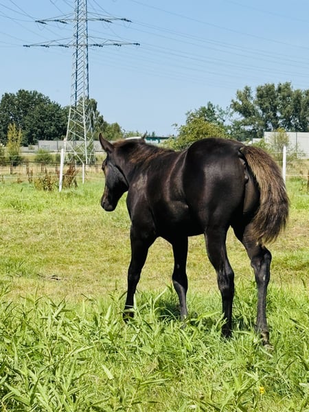 Fine was born on April 30, 2025. She is very confident and extremely curious. She is easy to handle and remains calm and self-assured even in traffic. She also handles trailer loading perfectly. Very well-behaved when visiting the farrier. Regularly dewormed and vaccinated. Her parents are friendly horses, both 100% reliable in the field. Fine’s sire, Gino, is very successful in competitive sport. Her dam also had a successful career in show jumping. Fine’s grandparents are all former successful competition horses, each with an outstanding character. Premium foal, grade 1a! Qualified for the Bundeschampionat (though they did not attend). She has a passport and AQHA papers. Rehoming due to relocation. She has been off the track since the end of September and can move directly to her new home. Price: €5,500 negotiable