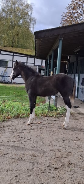 For sale is our beautiful Electric CopyNPaste, affectionately called Peppels, in a special Smoky Black coat and with an outstanding reining pedigree. Peppels is a real eye-catcher. She simply cannot deny her sire, Electric White. She impresses not only with her stunning color, beautiful markings, and bright blue eyes but also with her correct conformation and expressive movement. Peppels is very curious, affectionate, and attentive, yet she remains very calm. She is familiar with the foal basics and has been regularly dewormed. Of course, Peppels has a DQHA passport and the American registration papers. She is 5-panel N/N through her parents. Peppels has everything you could wish for in a successful future in reining sport and a reliable leisure partner. The price reflects her quality. We look forward to getting to know you. Peppels is available along with other foals. Feel free to contact us by phone as well: 015775300678