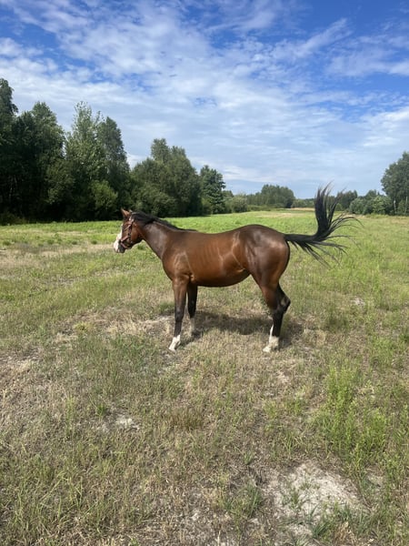 Na sprzedaż piękna klacz American Quarter Horse! Dane: - Rasa: American Quarter Horse - Płeć: Klacz - Rok urodzenia: 2024 -sire Tricked out Spook LTE 72 000 ,Sire Earnings 800.000$ - Umaszczenie: Bay - Wzrost: 150 cm -Panel Test 6 N/N - Specjalizacja: Reining Ta młoda i wszechstronna klacz to doskonały wybór dla miłośników reiningu oraz osób poszukujących wszechstronnego konia do dalszego szkolenia. Zadbana, o dobrym temperamencie, gotowa na nowe wyzwania. Zainteresowanych zapraszamy do kontaktu!