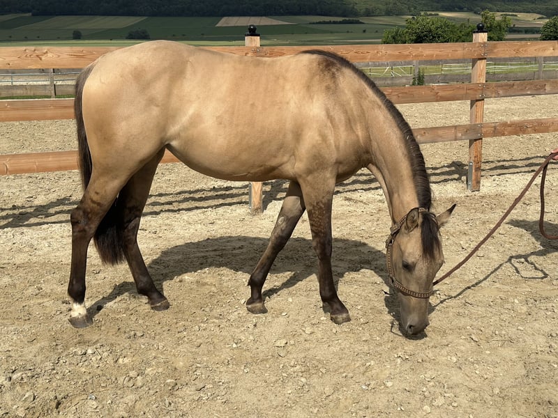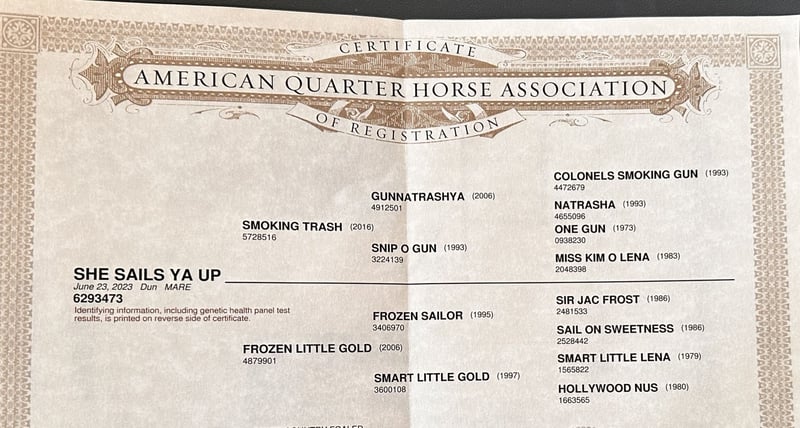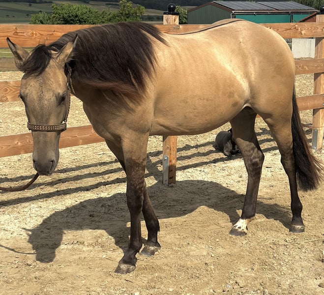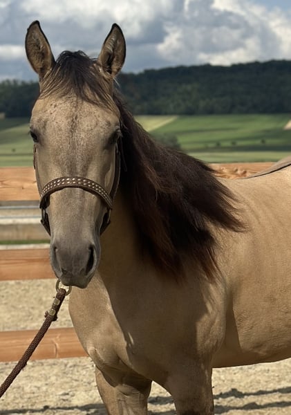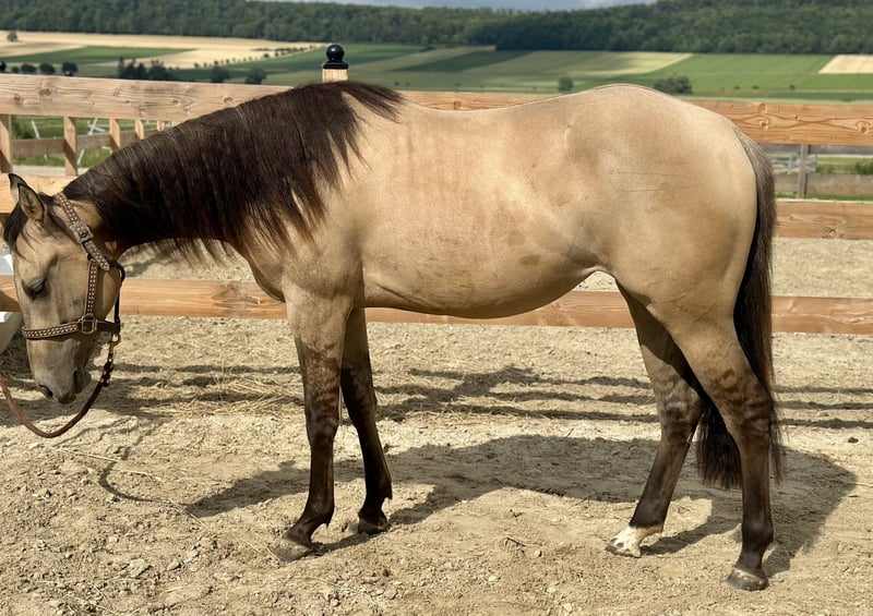 She Sails Ya Up 2023 QH mare, dunskin 5 panel n/n Nominated for: Germany, Euro, Italy Rare dunkskin mare by newcomer stallion Smoking Trash "Ava" comes from the breeding of SI Quarter Horses. Due to her pedigree and very good conformation, she is perfectly suited for sport and later also for breeding. Ava impresses with her very elegant movements and her top charisma and self-confident character. She is very people-oriented and learns very quickly. Top futurity prospect! Her paper is the perfect mix between modern and old reining bloodlines which makes her a top broodmare. Her sire is Smoking Trash, full brother to Inferno 66. Sire: Smoking Trash (Gunnatrashya x Snip O Gun) ____ LTE $ 113,000+ 2021 NRBC Reining Derby L3 Open Prelims 3rd 2021 Cactus Reining Classic L3 Open Derby Reserve Champion 2021 Run For A Million Open Shootout split 3rd 2020 NRBC L4 Open Derby finalist 2019 NRHA Futurity Open L4 finalist 2021 NRHA Derby Open Co Reserve Champion L3 2022 NRBC Derby Open L4 finalist 2022 The Run For A Million Open Reining finalist Dam: Frozen Little Gold (Frozen Sailor x Smart Little Gold) ____ fullsister to Little Gold Sailor (LTE 23.000,-) and Nu Sailor Lena (LTE $ 13.000,-)