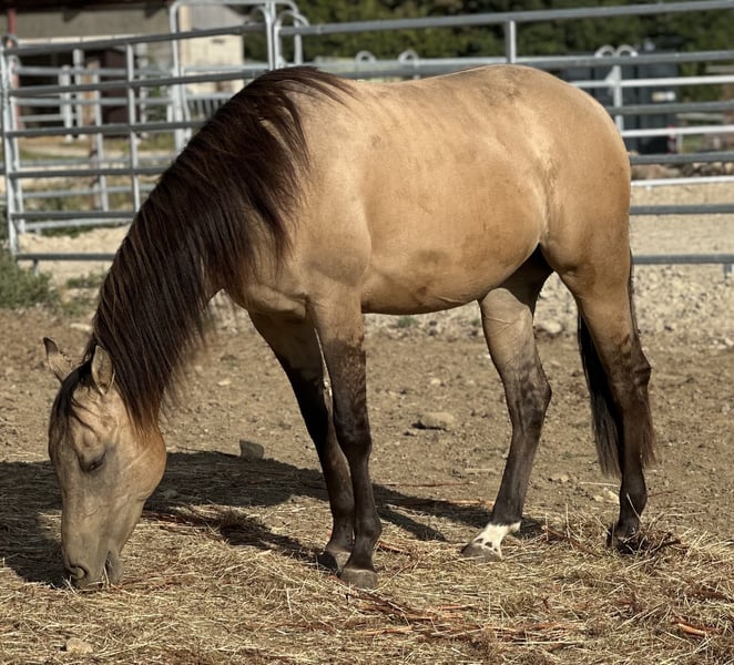 She Sails Ya Up 2023 QH fattrice, dunskin 5 pannelli n/n Nominata per: Germania, Euro, Italia Rara fattrice dunskin di stallone newcomer Smoking Trash "Ava" proviene dall'allevamento di SI Quarter Horses. Grazie alla sua ascendenza e alla sua ottima conformazione, è perfettamente adatta per lo sport e successivamente anche per la riproduzione. Ava si distingue per i suoi movimenti molto eleganti e la sua straordinaria presenza, oltre al suo carattere sicuro di sé. È molto affettuosa con le persone e impara molto rapidamente. Top Futurity Prospect! Il suo pedigree è la combinazione perfetta tra linee di sangue reining moderne e tradizionali, rendendola una fattrice di alto livello. Suo padre è Smoking Trash, pieno fratello di Inferno 66. Padre: Smoking Trash (Gunnatrashya x Snip O Gun) ____ LTE $ 113.000+ 2021 NRBC Reining Derby L3 Open Prelims 3° 2021 Cactus Reining Classic L3 Open Derby Riserva Campione 2021 Run For A Million Open Shootout 3° a pari merito 2020 NRBC L4 Open Derby finalista 2019 NRHA Futurity Open L4 finalista 2021 NRHA Derby Open Co Riserva Campione L3 2022 NRBC Derby Open L4 finalista 2022 The Run For A Million Open Reining finalista Madre: Frozen Little Gold (Frozen Sailor x Smart Little Gold) ____ sorella piena di Little Gold Sailor (LTE 23.000,-) e Nu Sailor Lena (LTE $ 13.000,-)