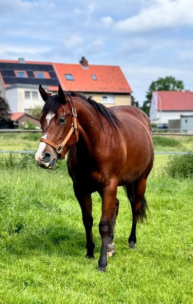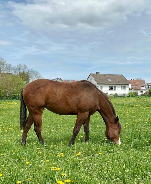 Bildschöne Quarterhorse Stute! Peptos Candy Girl - geb. 26.05.2022 Stute, bay Sire: Redwhiteandblue Boon Cutting Ltd Open Futurity/Champion in Italien Dam: Lil Dry Peppy Tochter - super Zuchtstute, super rittig und talentiert, im Gelände absolut unerschrocken, gut ausgebildet (war einige Monate im Profiberitt) konnte aber aufgrund einer Verletzung nicht geshowt werden - Ihr Vater Lil Dry Peppy Showrecord - Ihre Mutter Discounts Miss Poco war eine Superior Reining Stute Mega Stute mit großartigem Charakter. Sie ist intelligent, mutig, sensibel, menschenbezogen, mit viel Ausdruck und sehr guten Bewegungsabläufen, die Bemuskelung ist gigantisch. Ihre Vollschwester ist im Cutting Training und zeigt sich vielversprechend und talentiert. Candy lebt bei uns in einer kleinen gemischten Herde und ist sehr sozial. Wer eine außergewöhnlich schöne, korrekt gebaute Stute, mit guten Beinen, Freundin und Reitpartnerin sucht, wird hier fündig. Regelmäßig geimpft, entwurmt und dem Schmied vorgestellt. Schmiede und verladefrom DQHA einbezahlt Standort: 18528