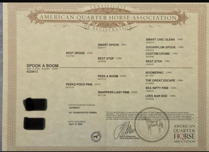 Bildhübsche Quarter Horse Stute mit bestem Reiningblut in Sonderfarbe Buckskin. Baty stammt aus eigener Nachzucht und sucht nun ein gutes neues Zuhause. Aktuelles Stockmaß ca. 148 cm. Baty ist äußerst liebenswert und talentiert. Sie wurde schonend gestartet, läuft alle Grundgangarten sicher unter dem Reiter und besitzt eine solide Grundausbildung. Sie zeigt schöne Bewegungen und ist sicher auch interessant für die Ranchridingklassen. Baty wurde regelmäßig entwurmt, geimpft und ist schmiede- und verladefromm. Sie ist im EWU Jungpferdeprogramm eingezahlt. Beide Eltern 5 Paneltest n/n. Sie wuchs artgerecht im Herdenverband auf und ist im Handling äußerst umgänglich. Röntgenbilder vorhanden, Preis der Qualität entsprechend.