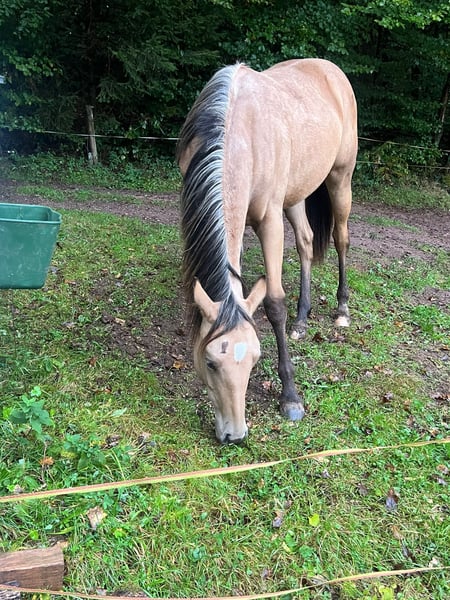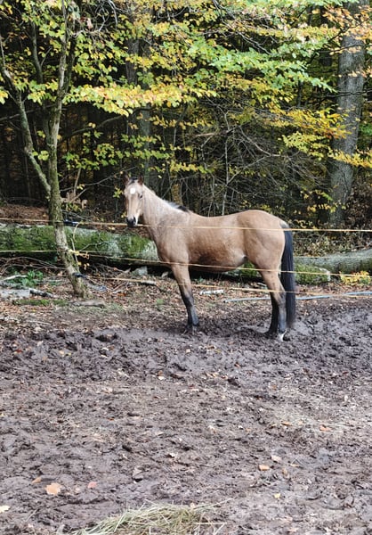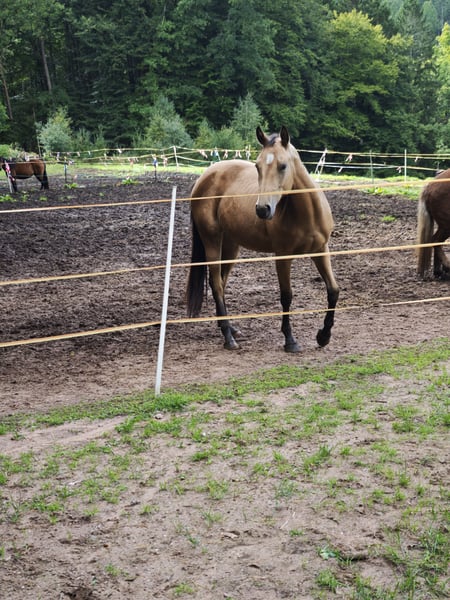 A veces, las cosas no salen como uno planea, por lo que lamentablemente debo desprenderme de uno de mis caballos. En venta está "Moon", una hermosa y llamativa yegua de la raza Quarter Horse en el color especial Buckskin, que no solo impresiona por su apariencia, sino sobre todo por su carácter amigable. Datos principales: Nombre: Spooks Famous Moon Pedigrí: de Best of Spook, de A Famous Escapes Fecha de nacimiento: junio de 2023 Color: Buckskin Altura a la cruz: aproximadamente 1,50 m (aún en crecimiento) 5 Panel n/n Pasaporte DQHA con certificación de cría Inscrita en Futurity Carácter y entrenamiento: Moon es una yegua joven extremadamente sociable y cercana a las personas. Busca constantemente el contacto con el jinete y en el manejo diario se muestra siempre tranquila y dispuesta a aprender. Ya está muy bien preparada para su futura vida como caballo de montar: Manejo con herrador: muestra una actitud muy tranquila y sin complicaciones durante la herradura. Se desplaza con calma en el remolque y viaja tranquilamente. Manejo general: conoce el ABC de los caballos jóvenes y es muy aplicada. Está familiarizada con paseos y con tareas como caminar sobre lonas, por ejemplo. Condiciones y salud: Moon ha crecido fuerte y sana. Hasta ahora nunca ha tenido problemas de salud y disfruta de su juventud en un paddock con otros caballos, en un grupo social. Esto la ha socializado perfectamente, es segura en sus patas y equilibrada. Resumen: Quien busque un potro con ascendencia en reining y un corazón de oro, encontrará en Moon a la perfecta candidata. Ella está lista para cambiar a manos que la apoyen y comenzar juntos nuevas aventuras y proyectos.