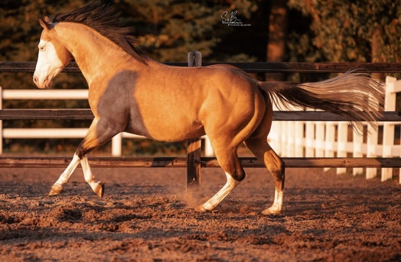 🌿 Pippilotta – notre jument azteque de 2 ans recherche sa maison de cœur 🌿 Notre magnifique pouliche Pippilotta (père Quarter Horse, mère espagnole) a 2 ans et est née et a grandi chez nous. Sa mère et son père proviennent de notre propre élevage – Pippilotta est donc un véritable poulain de cœur. Pippilotta grandit avec amour dans un troupeau mixte sur de vastes pâturages. Elle est curieuse, sociable et apporte un merveilleux mélange d'élégance et de sérénité. Dans le quotidien, elle se montre très facile à gérer – elle connaît le lien, donne ses sabots avec gentillesse, aime se promener et voyage jusqu'à présent calmement dans le van. Grâce à sa lignée, elle allie force, charisme et polyvalence – une excellente base pour son développement futur, que ce soit dans le loisir, l'équitation western ou l'équitation de travail. Nous souhaitons pour elle un foyer où elle sera encouragée avec patience, cœur et compréhension des chevaux. Si désiré, Pippilotta peut également rester chez nous pour son élevage, et il est également possible de la former chez nous plus tard ou de la ramener pour sa formation. ✨ Ceux qui souhaitent rencontrer Pippilotta sont cordialement invités à venir la visiter et à se laisser envoûter par son charme. Veuillez nous contacter uniquement par téléphone : 01624348386