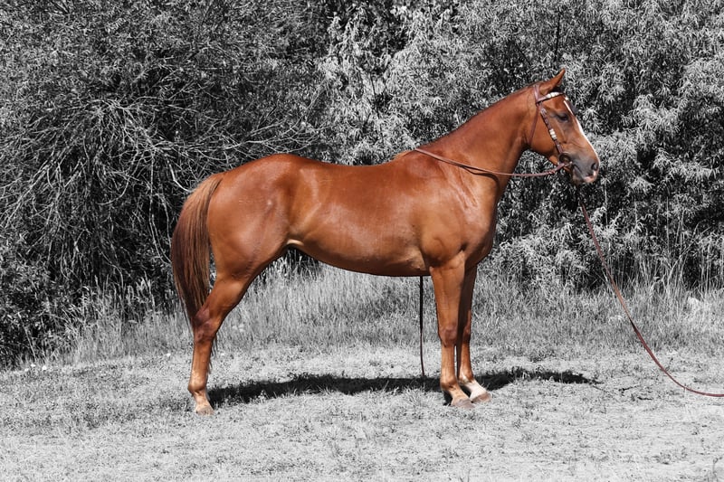 "AVAILABLE ON ONLINE HORSE AUCTION AT www DOT MagicHorseAuction DOT com BIDDING OPEN NOW thru TUESDAY | AUGUST 5TH! - BUY IT NOW AVAILABLE! *Final price will be determined on auction site* CONSIGNOR CONTACT INFO: Dynamite Horses 970-632-3644 LOCATION: Fort Collins, CO "★★ MMB FAMOUS DELIGHT ★★ “Piper” | AQHA Mare | Pretty • Broke • Full of Try Say hello to MMB Famous Delight, better known as Piper — a gorgeous AQHA mare with the build, brain, and breeding to go far in just about any direction. She’s strong, stylish, and has a kind, willing heart that makes her a barn favorite. Piper is a natural learner with a big work ethic and an “in your pocket” personality. She loves having a job and picks up new concepts quickly. In the arena, she’s got a great start — a smooth walk, jog, and lope, with steady progress on neck reining, flying lead changes, spins, and loping balanced circles. She’s soft in the face, tuned in to her rider, and eager to please. Out on the trail, Piper has been extensively ridden in all kinds of environments — from busy downtown Fort Collins to scenic mountain terrain. She’s encountered wildlife, livestock, bikes, runners, strollers, traffic, and loud crowds, and takes everything in stride. She crosses bridges and water without hesitation, and she’s the kind of horse you can drop your reins and enjoy the ride on. She’s also carried a flag, walked over tarps, and even let kids climb all over her — always calm, always steady. Her composure, combined with her athleticism, makes her an outstanding candidate for ranch versatility, trail riding, or performance work. With her eye-catching build, sweet demeanor, and solid foundation, Piper is the kind of mare that gets noticed — and one that gets better with every ride. Watch her video, come meet her in person, and see why we’re so excited about this talented mare. "