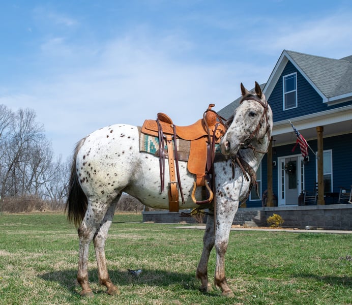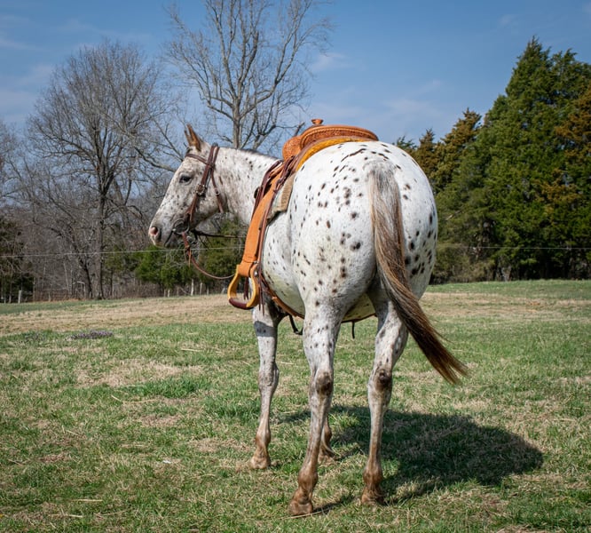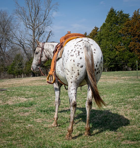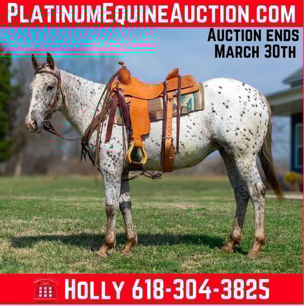 ONLINE AUCTION Place your bids at www.PlatinumEquineAuction.com Starting Bid $3500 Auction ends March 30th, 2025 Need a new saddle? Check out White Rock Saddles on our website or Facebook! I want to show you a QUIET GENTLE 2 year old registered Appaloosa Filly we call Abby! She stands 14.1 and cute as a button! You don’t need to be a horse trainer to finish this filly with 60 days riding on her. She is so pleasing and willing with everything you show her! We have had the privilege to ride and enjoy her this past few months! No buck or silliness with her and the perfect size for all you trail riders! Has a nice natural low headset that will stay consistent while riding! She lopes both ways while taking both leads! Abby will cross anything on the trails with confidence. We have had the four wheelers and dogs around her and no scare at all. There isn’t anything bad I can say about this filly she is so easy to be around. She will ride the same in the arena, out in an open field or down the road. Saddles quietly, stands like a statue while bathing and no lunging required! We are giving a guarantee on this filly if you don’t like her send her back! 100% sound and open to PPE at buyers expense. Come try her out in person! Buy with confidence! Call Holly Griffin 618-304-3825 with any questions. Located in Greenville, KY. ONLINE AUCTION Place your bids at www.PlatinumEquineAuction.com Starting Bid $3500 Auction ends March 30th, 2025 Need a new saddle? Check out White Rock Saddles on our website or Facebook!