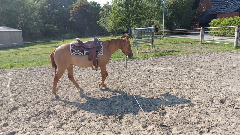 Sehr schöne Stute Geboren am 09.05.2023 Verkehrssicher auf Hufen und Beinen Röntgenologisch ohne Befunde (ohne Anmerkungen) für Sport und Zucht am 12.06.2025 Panel 6 N/N Farbe: Red Dun NRHA Wettbewerbslizenz Wird täglich eingeritten Kennt das Untergebrachtsein Ist gewohnt, im Stall zu stehen Reitet bequem Bereit für die weitere Ausbildung Vater ist My Royal Gun (Gunners Enterprise) (Colonels Smoking Gun x Be Aech Enterprise), der mit Gina Maria Schumacher erfolgreich im Sport war. Die Mutter ist eine direkte Hollywood Dun It x Topsail Whiz. Die Großmutter Serendipity Whiz war sehr erfolgreich im Reining. Für weitere Informationen können Sie eine Nachricht über den Chat senden.