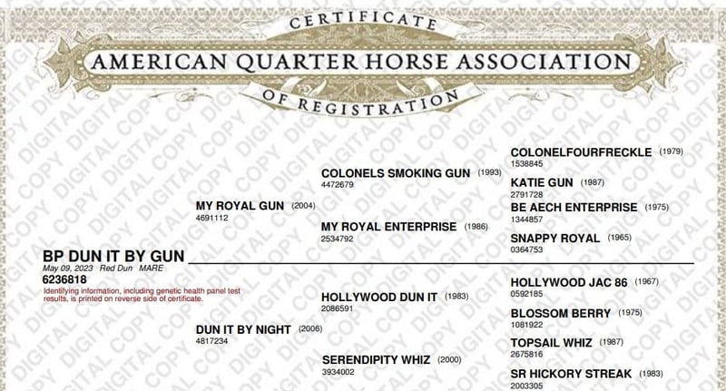 My Royal GunCOLONELS SMOKING GUN (GUNNER)My Royal EnterpriseCOLONELFOURFRECKLEKATIE GUNBE AECH ENTERPRISESnappy Royal