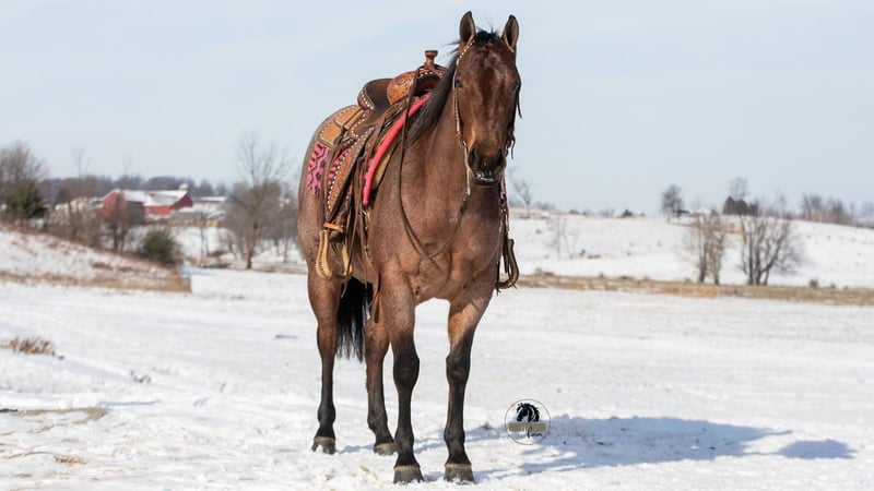 ⚜️ 𝓗𝓮𝓻𝓲𝓽𝓪𝓰𝓮 𝐖𝐢𝐧𝐭𝐞𝐫 𝓒𝓵𝓪𝓼𝓼𝓲𝓬⚜️ Happening now thru MONDAY | DECEMBER 29th - Available EXCLUSIVELY on HorseBid's website! For more details and to register visit: www.Horsebid.com CONSIGNOR CONTACT: North Wind Farm 330-473-3521 LOCATION: Fredericksburg, OH BREED: quarter horse REGISTERED: No COLOR: bay roan HEIGHT: 14.1 AGE: 4 GENDER: Mare Ember is a 4 yr old grade quarter horse mare standing at 14.1hh. She is well trained to ride! Ember is very sweet and gentle. She has good manners! She is a great trail horse and takes new places in stride! She stands nicely to be groomed and for tacking up! She will also stand when getting bathes! She can be turned out with other horses and is easy to catch! She rides great in the arena, she has easy cues and responds well! She has A smooth and is easy to ride walk, trot, lope! She has a nice neck rein and a side pass! She can be rode bareback and bridles! She has a lot of trail experience! She rides through creeks, through brush, and is surefooted! She doesn’t mind the tarp or the ball! She is used to being around dogs and atvs! She can be rode out in the traffic and is traffic safe! She is confident and easy going! Ember is the same horse everyday. She is cute, safe, and so much fun to ride! Ember is looking for her forever person, reach out with any questions you might have about her! ⭐️North Wind Farm is renowned for its quality trail and all-around horses. Our horses are versatile and can excel in any discipline, making them perfect for riders of all levels. Whether you're looking for a reliable trail companion or a horse that can perform in various disciplines, North Wind Farm has the perfect match for you. Our commitment to excellence and passion for equine care ensures that each horse is well-trained, healthy, and ready to meet your needs. Contact us: Tim (330)600-8840 Lisa (330)473-3521