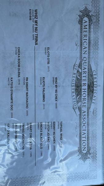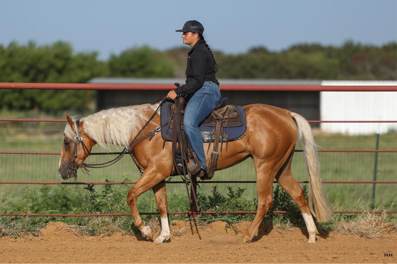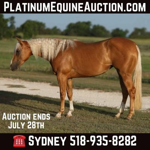 ONLINE AUCTION Place your bids at www.PlatinumEquineAuction.com Starting Bid $3500 Auction ends July 28th, 2024 Need a new saddle? Check out White Rock Saddles on our website or Facebook! Whiz My Nu Trina aka “Vegas” is a AQHA registered 2 year old mare, standing at 14.1H currently with some room to grow. This palomino mare is set to capture everyone’s attention with her striking appearance and charming personality. She’s a true head-turner, with a radiant personality that shines as bright as her gorgeous coat. Get ready for her to steal the show! Vegas is extraordinarily gentle for her age, and handles new situations with confidence. She is a gorgeous filly with so much potential for a career in almost any discipline from breakaway, barrel racing, ranch versatility, all around rodeo horse, SHOT shows, mounted shooting prospect and much much more! This mare has been started slowly and correctly with about 30-45 rides. She will walk, trot, lope in an arena, the pasture, or on trails. Vegas has an incredibly natural stop and turn around that will continue to improve immensely under correct training. She was started in a bosal and recently graduated to a snaffle bit. She is starting to learn how to soften to the bit and yields nicely to leg pressure. Vegas has been ridden in several different arenas already, been ridden in pastures and trails, and ridden through town. I can’t say enough about how gentle this filly is, she’s seen a lot of “scary” things like tarps, flags, tents, water fountains, bridges, and traffic handling them all with confidence, she even gets to playing with some. Vegas stands tied very nicely to be groomed, saddled, and bathed. She has recently been seen by our vet, dentist, chiropractor, and farrier and was an outstanding citizen for all. She loads on and off the trailer with ease as well. Vegas does well outside by herself or with other horses and also enjoys being stalled. This filly has the looks, athleticism, and mind to go in any direction with what I’m sure will be an amazing career ahead of her. For more information on Vegas or questions please call Sydney with SRS Training and Sales at (518) 935-8282. Vegas is located in Granbury, TX and we are happy to help you arrange shipping anywhere in the US. ONLINE AUCTION Place your bids at www.PlatinumEquineAuction.com Starting Bid $3500 Auction ends July 28th, 2024 Need a new saddle? Check out White Rock Saddles on our website or Facebook!