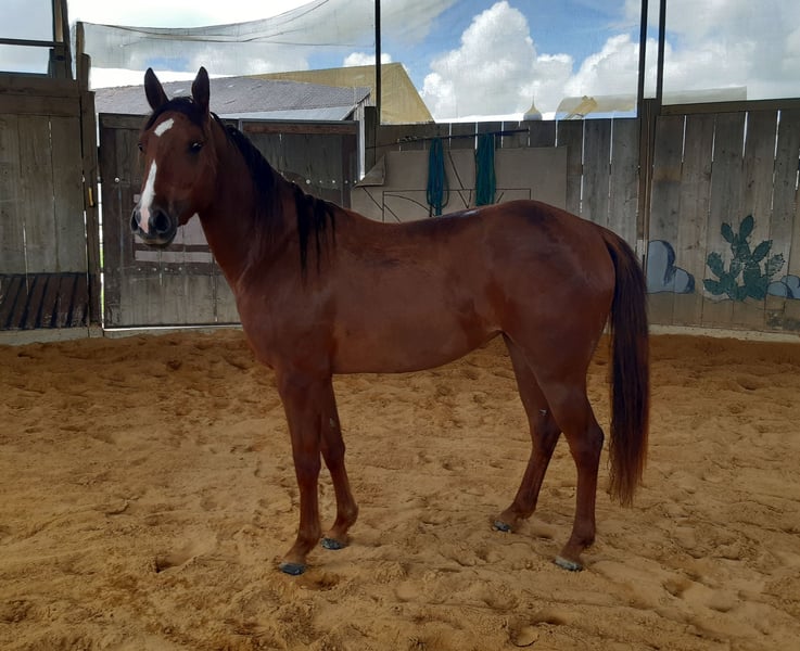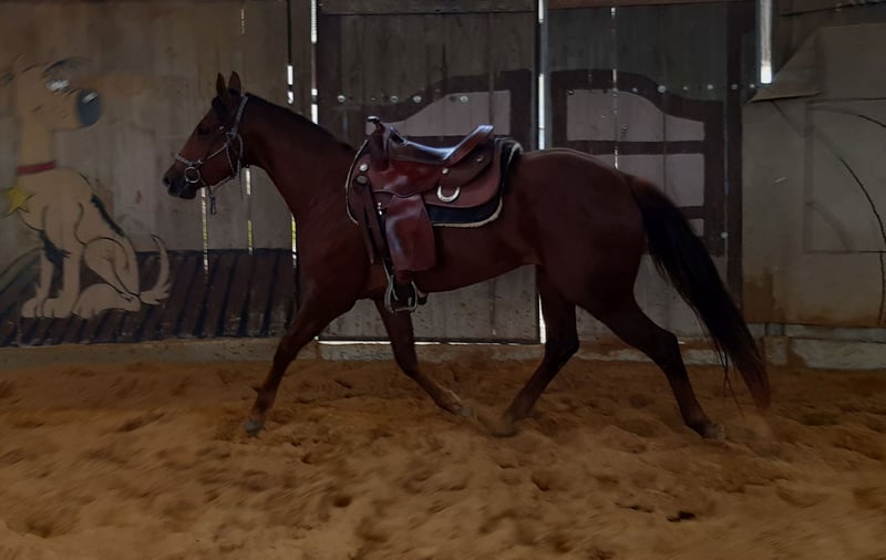 Hübsche Quarter Horse Stute aus 2021, Chestnut mit langer Mähne, Stm ca 1,50m, für den gehobenen Freizeitbereich zum weiter fördern in Jungpferde erfahrene Hände abzugeben, aus Offenstallhaltung, gut sozialisiert, geimpft, entwurmt, Zähne frisch gemacht, 2024 vom Boden vielseitig gearbeitet und leicht angeritten, dann Fohlenpause. Ihr Palomino Hengstfohlen aus 2025 kann besichtigt werden und wird demnächst abgesetzt. Die Ausbildung unter dem Sattel geht nun weiter. Tolle Zuchtstute 6 Panel NN, Reining/Cowhorse-Linie, Mister Dual Spring x Keen Freckles, Näheres gerne bei ernsthaftem Interesse unter 017696487926.. Preis VB, mit weiterer Ausbildung steigend
