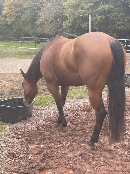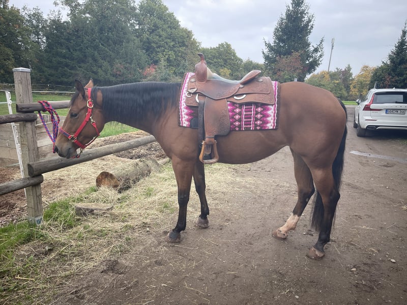 Zum Verkauf steht eine talentierte American Quarter Horse Stute, geboren im Jahr 2021. Aufgeschlossen & interessiert absolviert die freundliche und menschenbezogene American Quarter Horse Stute Milly ihre Ausbildung. Gelände, Platz, Trail – ob an der Hand oder unter dem Sattel, die 155cm große Stute mit großem Herz ist fleißig, motiviert & mit Spaß bei der Sache. Diese Stute zeigt bereits vielversprechende Ansätze und sucht ein für immer zu Hause sie hat das Potenzial, sich in vielen Bereichen weiterzuentwickeln. Im Handling zeigt sich Milly von ihrer besten Seite und hat keinerlei Unarten. Sie kennt Hunde & Katzen, Verladen, Tierarzt, Schmied und Chiropraktik/Physiotherapie sind kein Problem. Sie ist ein echter Schatz in jeder Lebenslage. Auf der Koppel steht sie auch gerne mit anderen Pferden zusammen. Milly ist seit ihrer Geburt bei uns und wird immer einen besonderen Platz in unserem Herzen haben, deswegen suchen wir für sie ein 5-Sterne-für-immer-zuhause. Ideal wäre ein ambitionierter Freizeitreiter, der ein vielseitiges Pferd auf Lebenszeit sucht und Millys Ausbildung weiterhin fördert. Aufgrund ihrer Abstammung eignet sie sich auch hervorragend für die Zucht.