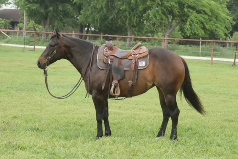 ▪️▫️◾️𝐭𝐡𝐞 𝑴𝒂𝒚 𝐒𝐞𝐥𝐞𝐜𝐭◾️▫️▪️ Happening now thru MONDAY | MAY 4th - Available EXCLUSIVELY on HorseBid's website! For more details and to register visit: www.Horsebid.com CONSIGNOR CONTACT: Eli Sales 417-848-6360 LOCATION: Dublin, TX BREED: Quarter horse REGISTERED: No COLOR: Bay HEIGHT: 14.3 AGE: 4 GENDER: Mare Daisy is just that, an absolute daisy! This 4-year-old quarter horse bay mare is the epitome of gentleness and a true barn favorite. With her calm demeanor and willingness to please, she’s an absolute pleasure to work with both on the ground and under saddle. I cannot say enough good things about how gentle and willing this mare is. She has been used extensively on the ranch to gather, sort and doctor cattle as well as dragging calves and getting used on a weekly basis at the stockyards. Daisy handles herself confidently in the sorting pens and will absolutely watch a cow. She is very gentle and surefooted in the pasture, on the trail, down the road or in the arena. She has been hauled extensively and handles it amazing and gets along with everyone in the trailer. Whether you're looking for a reliable ranch partner or a trustworthy trail horse, she’s got the mind and work ethic to excel in any situation. She rides amazing and willing with a smooth and controlled walk, trot and lope. She rides one handed and correct making it a breeze to open gates, side pass, sort cattle or just navigate your way down the trail! Daisy has been handled with care and patience ever since she was foaled, making her an absolute joy to be around and a true companion. Great for any level of rider, eager to please, and extremely easy to catch, groom , bathe, tack up and care for. Whether you're looking to hit the trails, work cattle, ride in the arena, take her to the horse show or all of the above, she’s sure to be a loyal and dependable partner for years to come. Daisy is absolutely 100% sound, sane, safe for anyone and exhibits no mareish tendencies with no buck, kick, or bite and is good to shoe.