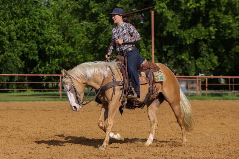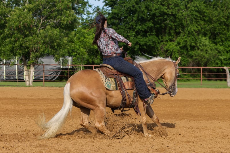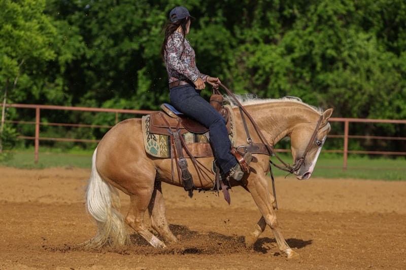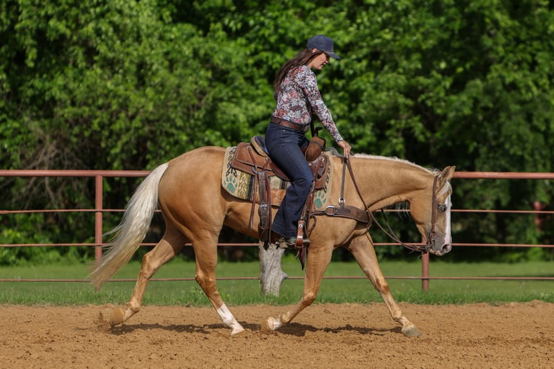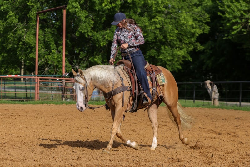 ▪️▫️◾️𝐭𝐡𝐞 𝑴𝒂𝒚 𝐒𝐞𝐥𝐞𝐜𝐭◾️▫️▪️ Happening now thru MONDAY | MAY 4th - Available EXCLUSIVELY on HorseBid's website! For more details and to register visit: www.Horsebid.com CONSIGNOR CONTACT: TR Livestock Company 605-370-4644 LOCATION: Rusk Texas BREED: AQHA REGISTERED: Yes REGISTERED NAME: Modonna COLOR: Palomino HEIGHT: 14.2 AGE: 4 GENDER: Mare Madonna is a 4 year old AQHA beautiful palomino filly sired by “Modern Gun” (LTE of over $360k) and out of an own daughter of “Gunnatrashya” (LTE of over $233k) Madonna stands 14.2 hands tall and is stout! She is clean, straight and correct in every! Madonna started her career under saddle with a reining foundation, she has a big stop, great spins and very athletic. She trots and lopes beautiful circles, with a low headset and always soft and willing! She’s smooth, balanced, and honest, with the kind of feel that makes her enjoyable to ride whether you’re in the arena or just going for a relaxing ride. Madonna is definitely a standout filly with the pedigree, mind, and train ability that’s getting harder and harder to come by. She stays gentle and always aims to please, she wants to do her job right and takes pride in it, giving you the same try every time you swing a leg over. Madonna is very gentle and quiet and is sweetheart on her back or on the ground, she has a in your pocket personality and wants to be your best friend! She’s excellent to bathe, shoe, tie, and trailer. Out on trails she’s a pleasure to ride, quiet, and steady. She’s good with traffic and all the everyday sights and sounds, taking everything in stride. She’s not just a talented filly with a great pedigree, she is one you look forward to riding every single day. If you’re looking for a kind, versatile, filly with an exceptional mind, that can go absolutely any direction be sure to check her out!