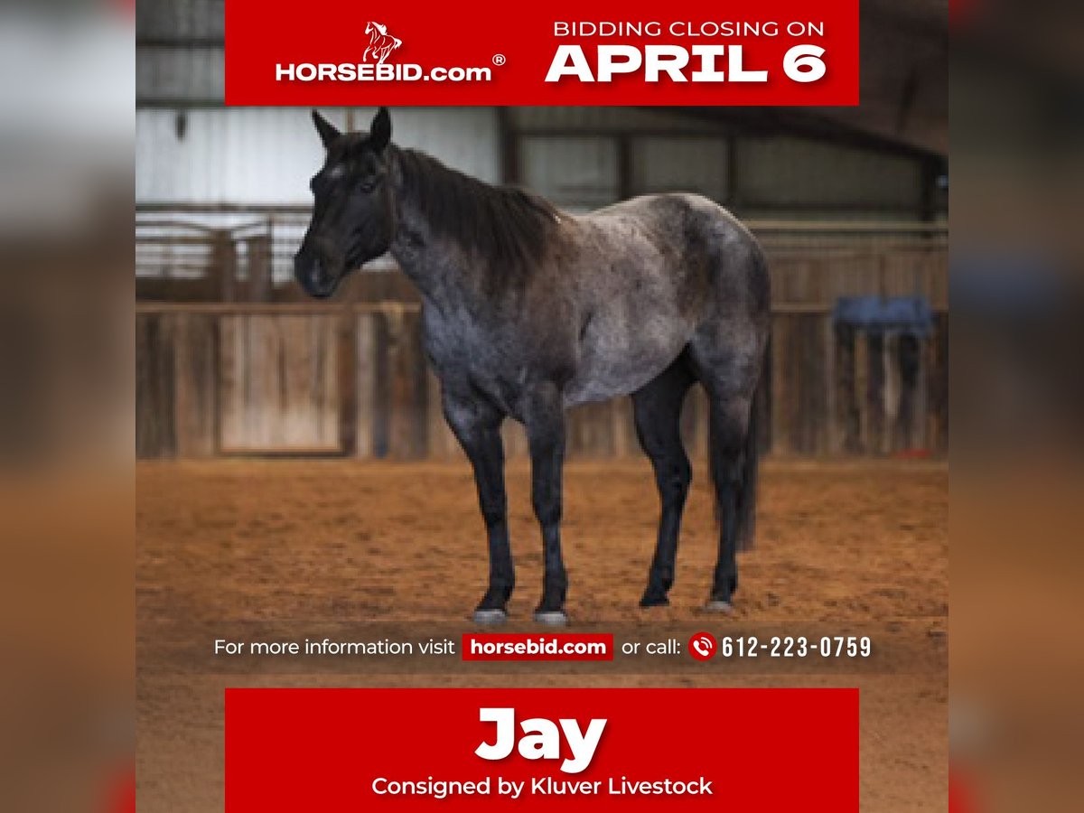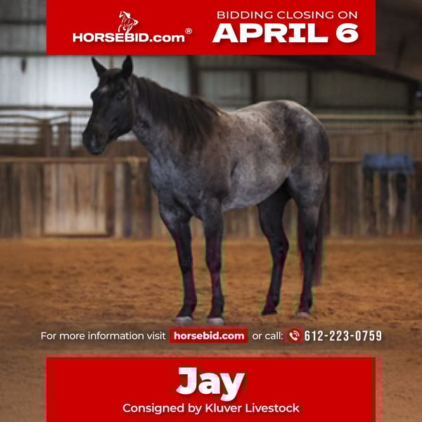 🌟𝑨𝒑𝒓𝒊𝒍 𝐀𝐋𝐋 𝐒𝐓𝐀𝐑 𝐋𝐈𝐍𝐄𝐔𝐏🌟 Happening now thru MONDAY | APRIL 6th - Available EXCLUSIVELY on HorseBid's website! For more details and to register visit: www.Horsebid.com CONSIGNOR CONTACT: Kluver Livestock 612-223-0759 LOCATION: Ripley, OK BREED: AQHA REGISTERED: Yes REGISTERED NAME: VP HOT METAL COLOR: Blue Roan HEIGHT: 14.1 AGE: 5 GENDER: Mare This blue roan mare is the kind that’s getting harder and harder to find… athletic, gritty, and built to go to work. She’s got the look everyone wants with that eye-catching blue roan coat, but she backs it up with her ride. VP HOT MEDAL “Jay” is a 5 year old blue roan mare standing at 14.1 hands she’s small but mighty. This mare is handy and broke in all aspects. You can take her and use her all day around the ranch and she has a great start on the breakaway and heel side. She’s one that always wants to work and she aims to please. She’s a point and shoot mare who’s easy to get along with! She was broke correct with a soft face and all the feel you want in a rope mare prospect. She also has a great mind and handles everything very well. She’s been rode through rivers, logs, ditches, trail courses, town, rodeos, and anything you could throw at one. Shes been used all day around the feedlot and doctored wheat pasture cattle. She’s our go to in the barn when it comes to a long day of work she’s got the mind and the athleticism to handle it all. She’s very well started on the heel side as well as breakaway with a very bright future in them both. She is always willing and aims to please. Jay is level headed, willing, and all business when it’s time to go to work, but still easy to be around every day. This is a mare with the talent, mind, and presence to take you somewhere. With that she doesn’t have to be a performance horse she’s just as enjoyable outside… quiet, level headed, and confident wherever you point her. She’s been ridden countless miles on the trails with different levels of riders. Take her down the trail, through rough country, water, brush, or new places she handles it all with ease. She’s the kind you can trust to stay gentle, ride off the same every time, and be safe for the whole family to enjoy. She loves a good long day of trail riding and is great for the job with her demeanor and good mind. Whether you want to rope on her, use her around the ranch, or just have a dependable, good-minded horse to enjoy, she truly checks all the boxes.