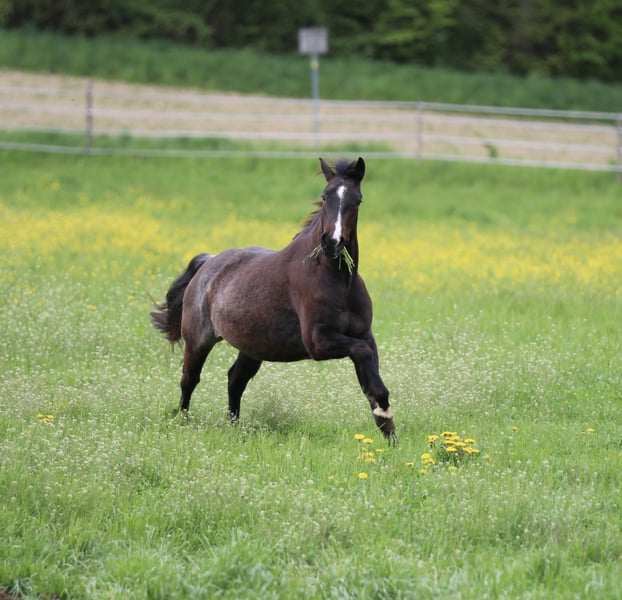 Expressive athletic cowhorse mare for sale from very high-quality performance lines. Kitty Boon SR is a very athletic young mare with cat-like quick movements and a very watchful eye. Unused and robustly grown, she is ideal for starting her under saddle now. She is familiar with groundwork, lunging, rider weight, and is very obedient and eager to learn. She is barefoot, lives in a large mixed-age and mixed-gender herd in a loose housing system, and holds a high rank within the group. Kitty is confident and fair to other herd members. She is only for sale to individuals with extensive experience with sensitive, intelligent cowhorses. As a yearling, she had an impression fracture of the forehead, which was not operated on and healed on its own without affecting her. There is only a dent visible on her face. Otherwise, she has never been sick. She carries GBED and MYHM - LWO and is 4 Panel N/N.