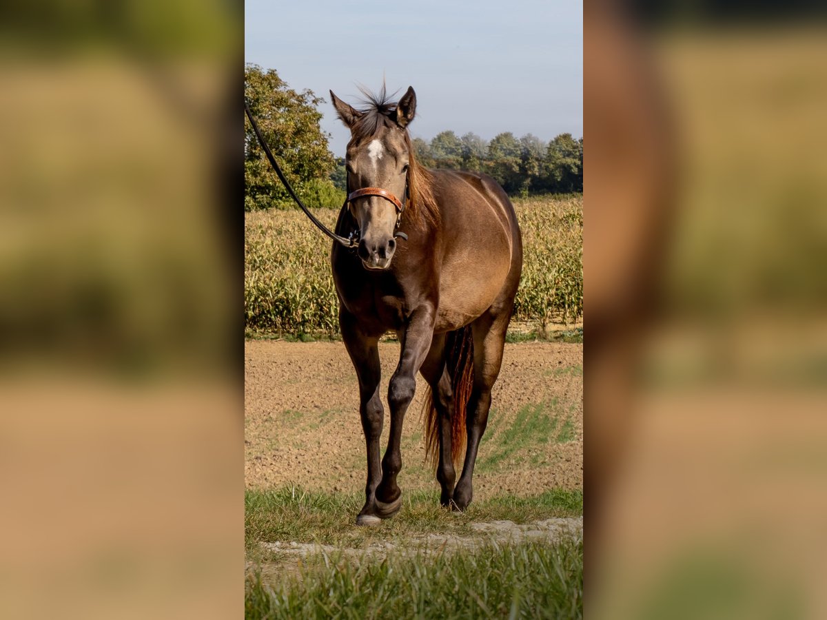 Miss Sinny Bar ist eine im Juni 2021 geborene buckskinfarbene Quarter Horse Stute mit einem Stockmaß von etwa 150 cm. Sie ist elegant, sportlich gebaut und gehört nicht zu den Gewichtsträgern, überzeugt aber durch ihre harmonische Entwicklung und ihre natürliche Athletik. Trotz eines angebrochenen Dornfortsatzes im Alter von zwei Jahren, der laut Tierarzt vollständig ausgeheilt ist, ist sie heute gesund, voll belastbar und wird regelmäßig geritten. Gerne kann der Tierarzt dazu befragt werden. Sie ist 5-Panel n/n über die Eltern, regelmäßig geimpft, entwurmt und zahnärztlich kontrolliert, läuft barhuf und war stets unter professioneller Sattelkontrolle. Aktuell lebt sie im Offenstall mit 24-Stunden-Heuversorgung und Weidegang und zeigt sich dort ranghoch innerhalb der Herde. Im Umgang ist sie ein sehr liebes, menschenbezogenes und verschmustes Pferd, das gleichzeitig willensstark, neugierig und manchmal etwas ungeduldig ist. Sie möchte immer gefallen, lernt schnell und zeigt viel Eifer sowie Offenheit für neue Aufgaben. Da sie noch viel hinterfragt und eine klare, faire Führung braucht, ist sie kein Anfängerpferd. Miss Sinny Bar wurde schonend und vielseitig nach dem Pro-Ride-Konzept ausgebildet. In der Halle läuft sie sicher in Schritt, Trab und Galopp und geht sowohl alleine als auch in der Gruppe zuverlässig ins Gelände. Besonders in der Freiarbeit sowie in der Boden- und Longenarbeit zeigt sie großes Talent. Durch ihre sehr gute Reining-Abstammung (Einsteins Revolution x Bueno Swiss Doc) ist sie nicht nur als Nachwuchspferd für ambitionierte Freizeitreiter interessant, sondern perspektivisch auch für die Zucht. Der passende Sattel kann auf Wunsch mit erworben werden. Da es sich um keinen Notverkauf handelt, wird großer Wert auf ein geeignetes Zuhause gelegt, in dem diese talentierte Stute weiter gefördert und abwechslungsreich beschäftigt wird. Miss Sinny Bar bringt alles mit, was man sich von einem jungen, motivierten Pferd wünscht, das gemeinsam mit seinem Menschen wachsen möchte.