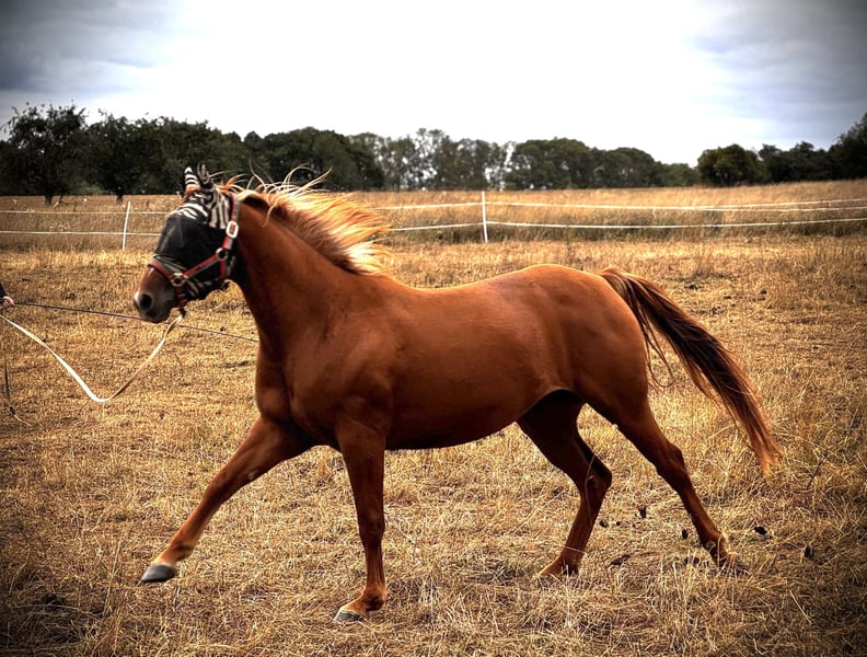 Fuchs-Stute Cielo B Paid By Dad (AQH) x Wallhalla (Dt.Pf) geb. 28.06.2021 Stockm. aktuell ca. 1,50m Wir suchen für unsere 4-jährige Fuchsstute ein neues Zuhause. Sie wurde vergangenes Jahr 3 Monate im Vollberitt Western ausgebildet und geht seit dem im Freizeitbereich unter dem Sattel und an der Longe. Sie ist ein sehr feines und sensibles Pferd, was einen erfahrenen Reiter, mit Geduld und Durchsetzungsvermögen benötigt. Sie kam 2025 aus dem Zuchtverband, in dem man nicht gut mit ihr umging, wo man behutsam mit ihr Schritt für Schritt Vertrauen aufbaute, um Basics, wie Hufe geben, anbinden, Longieren und erstes Satteln zu erlernen. Gerne Näheres per PN. Sie kennt Gelände, Straßenverkehr, Platz, Tiere wie Hunde, Hühner und auch Kinder und beweist sich in vielerlei Hinsicht als sehr bereitwilliges und lernwilliges Pferd. Durch ihre besondere Züchtung, gäbe sie auch ein tolles Springpferd o.Ä. Sie wird aktuell weiterhin im Freizeitbereich geritten, wird aber als angeritten verkauft, da noch viel unausgeschöpftes Potenzial vorhanden ist und sie durch ihre leicht dominante, aber nervenstarke Art einen Reiter benötigt, bei dem sie ihr erlerntes Wissen festigen kann. Sie steht ganzjährig in der Herde mit Offenstallhaltung und viel Auslauf, kennt aber auch Paddock und Stall. Um Reittourismus zu verhindern und da kein Reitplatz bei momentanen Standort des Pferdes vorhanden ist, bieten wir kein Probereiten, sondern ggf. ein Vorreiten an.