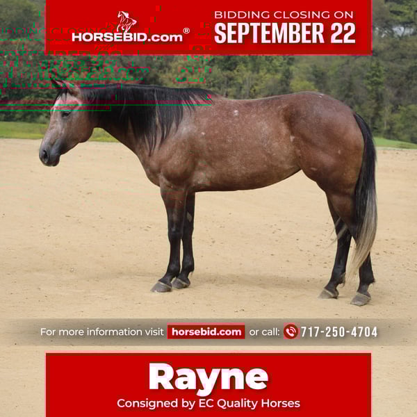 🍁𝒕𝒉𝒆 𝐅𝐀𝐋𝐋 𝑺𝒑𝒆𝒄𝒕𝒂𝒄𝒖𝒍𝒂𝒓🍁 Happening now thru MONDAY | SEPTEMBER 22nd - Available EXCLUSIVELY on HorseBid's website! For more details and to register visit: www.Horsebid.com CONSIGNOR CONTACT: EC Quality Horses 717-250-4704 LOCATION: Beaver Springs, Pa BREED: Quarter Horse REGISTERED: No REGISTERED NAME: Rayne COLOR: Dark Dappled Gray HEIGHT: 15 AGE: 4 GENDER: Mare The kind of horse you don’t see everyday! She’s Unique, Versatile, & User friendly! This mare gets heads to turn everywhere she goes! She’s gentle, safe, and reliable! Seeking for the perfect all around Family Horse look no further, here she is and we call her Rayne! Rayne is a 4yr old Dark Dappled Gray QH Mare! She stands 15hh tall made perfect and built solid to last a lifetime. This mare has the brains and ability to go absolutely any direction you choose. Whether you want to keep riding down the trail, take her to the arena, or even step into the show pen she’s versatile enough to handle any task you throw her way! Rayne would excel in just about any discipline from English Equitation to Ranch Riding! She’s smart, willing, and eager to learn anything new thrown her way! She is the kind you can enjoy today while still knowing she has the talent to go further tomorrow. With that being said as willing as she is also comes her sweet personality and gentle demeanor! Rayne is suitable for all levels of riders. Kids, unknowledgeable husband, friend, or grandma! She would make a top notch lesson horse or kids next 4H partner! Rayne rides both english and western. She rides in or out of the arena. Rayne will walk, trot, and canter. She picks up both of her leads. Rayne has a one hand neck rein. She is really broke and easy to ride! Rayne stands to get saddled, unsaddled, mounted, and dismounted from. She stands great to get clipped, bathed, for the farrier and also the vet! Rayne is easy to catch always the first to greet you at the gate. She loads and unloads on and off the trailer. Rayne is exactly what everyone is looking for she is the complete package! Rayne is selling 100% Sound! She will come with a current coggins, and health certificate! For further information regarding Rayne please don’t hesitate to reach out to Carley @ 717-250-4704 i’d be happy to answer any questions!