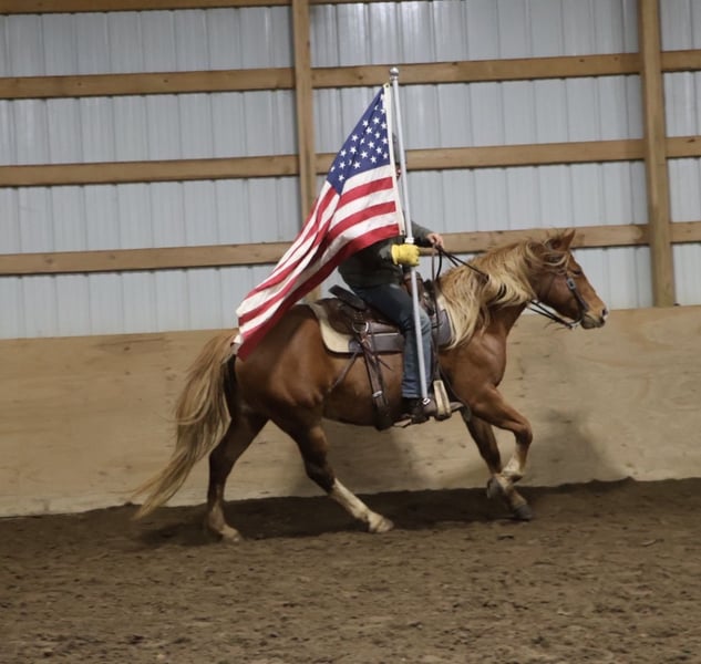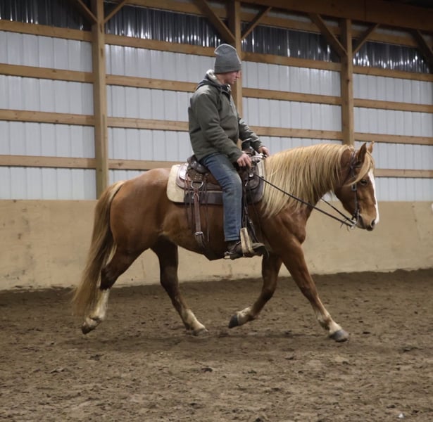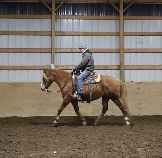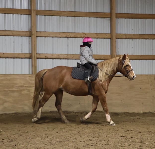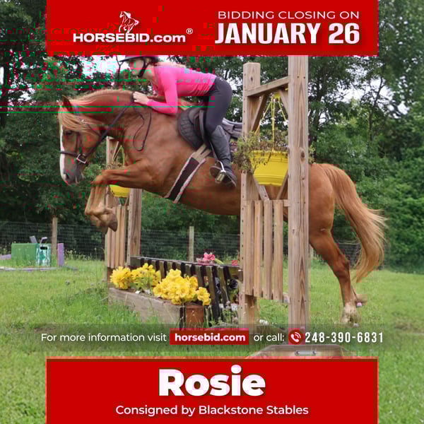 𝐉𝐀𝐍𝐔𝐀𝐑𝐘 ⭐️𝑨𝒍𝒍 𝑺𝒕𝒂𝒓 𝑳𝒊𝒏𝒆𝒖𝒑⭐️ Happening now thru MONDAY | JANUARY 26th - Available EXCLUSIVELY on HorseBid's website! For more details and to register visit: www.Horsebid.com CONSIGNOR CONTACT: Blackstone Stables 248-390-6831 LOCATION: Howell, MI BREED: Quarter Horse Haflinger Cross REGISTERED: No REGISTERED NAME: Rosie COLOR: Chestnut HEIGHT: 15.1 AGE: 5 GENDER: Mare Anyone looking for the perfect step up off your pony? Or a 1st horse who's not too big, but yet substantial underneath you? Meet Rosie she’s an adorable quarter horse Haflinger Cross mare. Rosie is a sturdy 15.1hh at 5 years old, although you wouldn't know that unless we told you. She is wise beyond her years. She is a stunning solid candy apple red in color with a flaxen mane and tail! She has a charming disposition and loves people and attention. She’s got excellent manners and will stand all day for grooming, tacking, and just being loved on. Rosie is a laid back kinda gal she’s got a nice walk, and an adorable little trot you can sit to all day, and a canter that you sink right into! You won't want to get off her as she's so comfortable. She has all the fun buttons, shes got amazing transitions. She will steep into the canter on either lead from the halt, she moves off seat and leg as well. Rosie knows lateral movements such as haunches in, how to yield to leg pressure, and how to turn on the forehand or haunches. Rosie has been ridden English western and bareback, by beginners big and small and by some advanced riders as well. She loves a good trail ride and is not one to shy from anything. Deep woods, open fields, water and roads all no issue. Rosie jumps right around full courses effortlessly. She will even swap her leads when asked! Woods water traffic big groups all no problem! She’s a safe and sensible girl! She's been exposed to many obstacles such as pool noodles, bridges, tarps and has even carried the flag. Rosie has attended several schooling shows and was fantastic. She is also broke to drive and has been used in a team. Rosie will excel in a home with lots of attention. She loves to jump and trail ride. She's the perfect steep up off a pony or a stellar 1st horse for someone wanting a mount who's not to big. We think she would be a blast in the hunt field as well!! Give me a call or txt 248-390-6831 to meet her! Rosie lives in Howell, MI 48855
