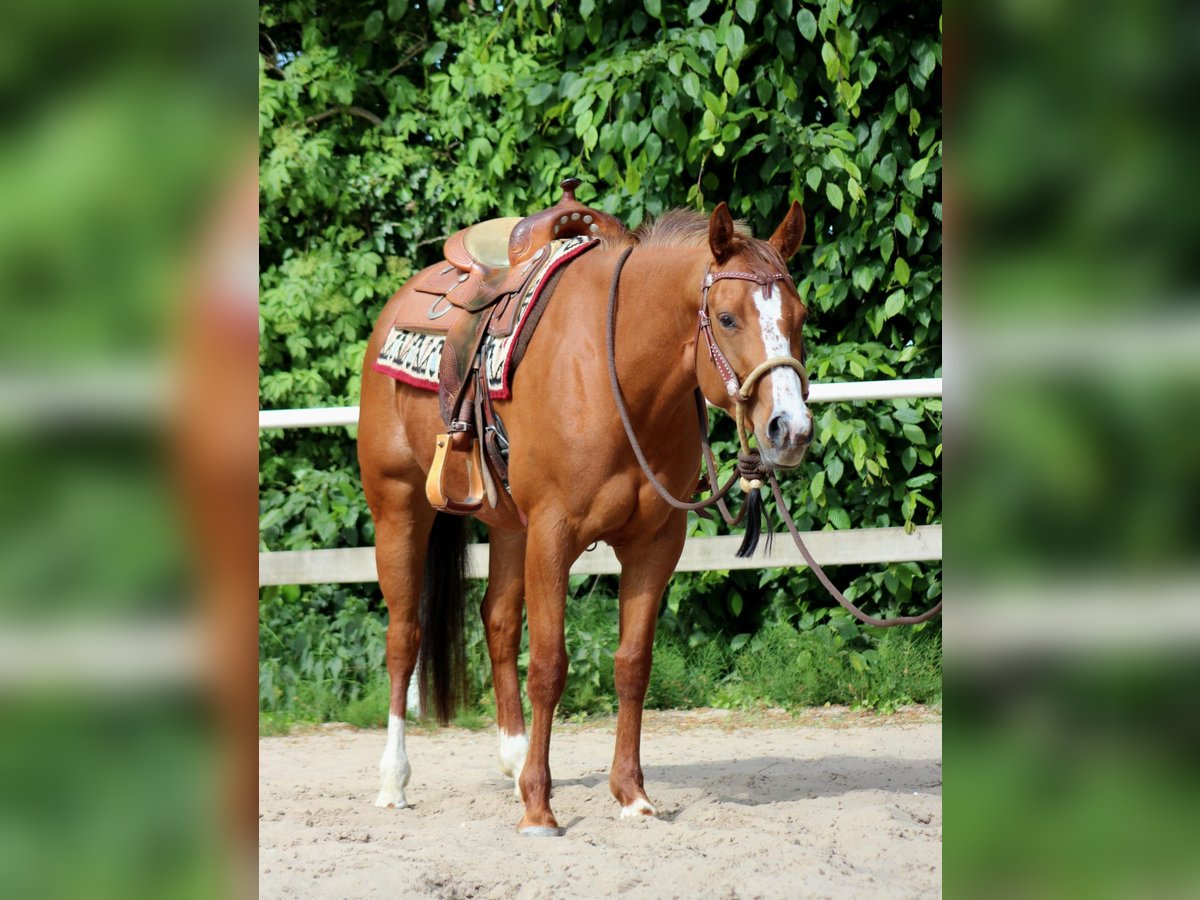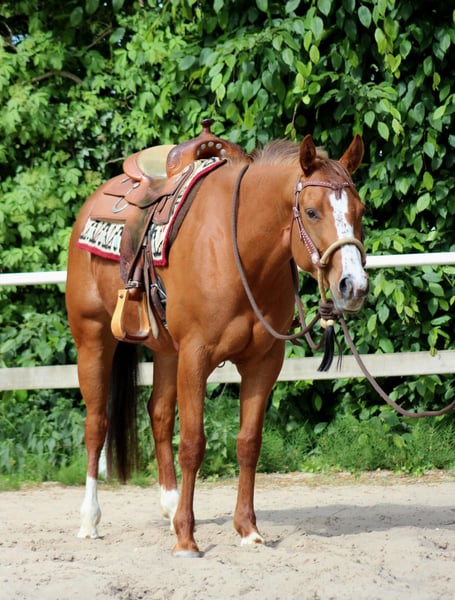 **Verkaufsanzeige für American Quarter Horse Stute** Zum Verkauf steht eine elegante American Quarter Horse Stute, geboren im Jahr 2021. Mit ihrem ansprechenden Fuchs-Farbkleid zieht sie sofort alle Blicke auf sich. Sie verfügt über ein Stockmaß von 156 cm, was sie zu einer idealen Partnerin für Western Pleasure und Freizeitritte macht. Diese gut gerittene Quarter Horse Stute überzeugt durch ihre ausgeglichene Natur und ihre zuverlässige Arbeitsweise. Sie ist freundlich im Umgang, aufmerksam und zeigt sich sowohl beim Reiten als auch im täglichen Handling stets ruhig und kooperativ. Dank ihrer soliden Grundausbildung im Westernstil eignet sie sich hervorragend für Reiter, die ein zuverlässiges und vielseitiges Pferd suchen, das sich in der Western Pleasure Disziplin bestens bewährt. Ihre athletische Konstitution, kombiniert mit ihrer freundlichen Art, macht sie zu einem idealen Begleiter für ambitionierte Freizeitreiter oder Western-Enthusiasten. Sie ist gesund, regelmäßig entwurmt und befindet sich in einem gepflegten Zustand. Wenn Sie auf der Suche nach einer zuverlässigen, gut gerittenen Quarter Horse Stute sind, die sowohl im Western Pleasure als auch in der Freizeit begeistert, dann ist diese Fuchsstute die perfekte Wahl. Für weitere Informationen und einen persönlichen Eindruck stehe ich Ihnen gerne zur Verfügung.