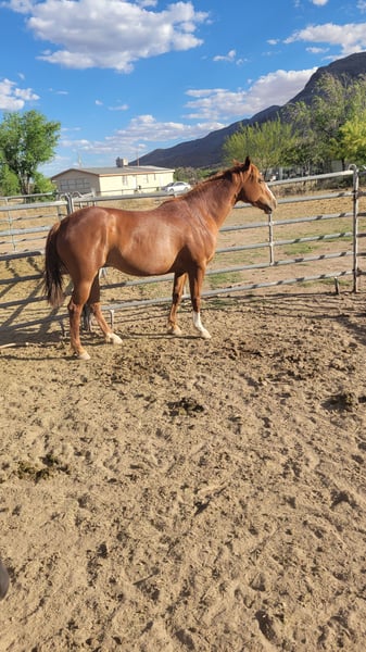 Sorrel mare for sale 5 years old and pregnant with half andalusian due in July asking $5,500 obo. She is rideable but is what you would call hot or high strung so is good with someone who knows what they are doing.. her foal is due in July and is eligible to be registered as a half andalusian.