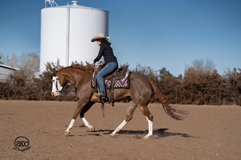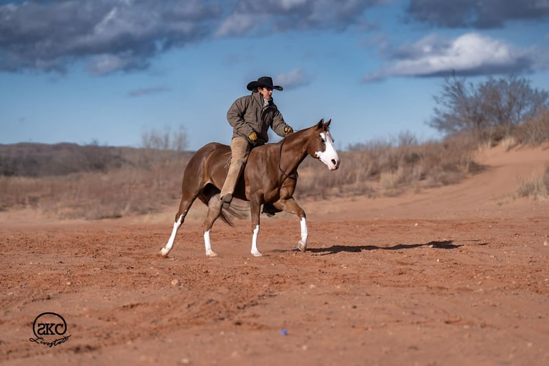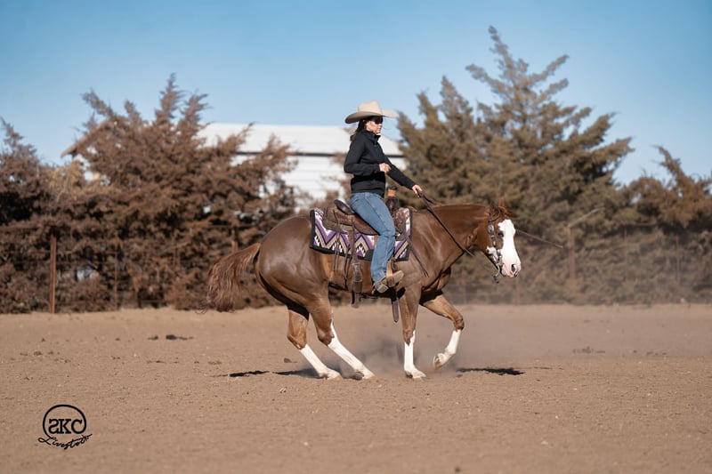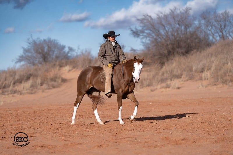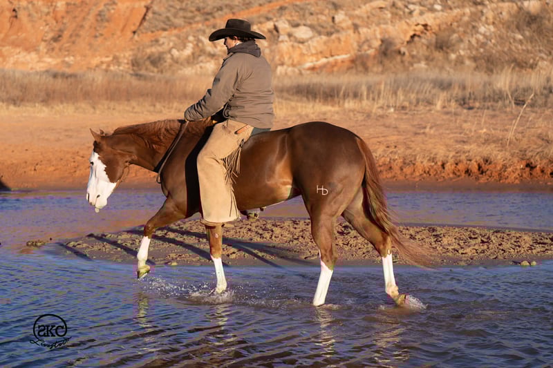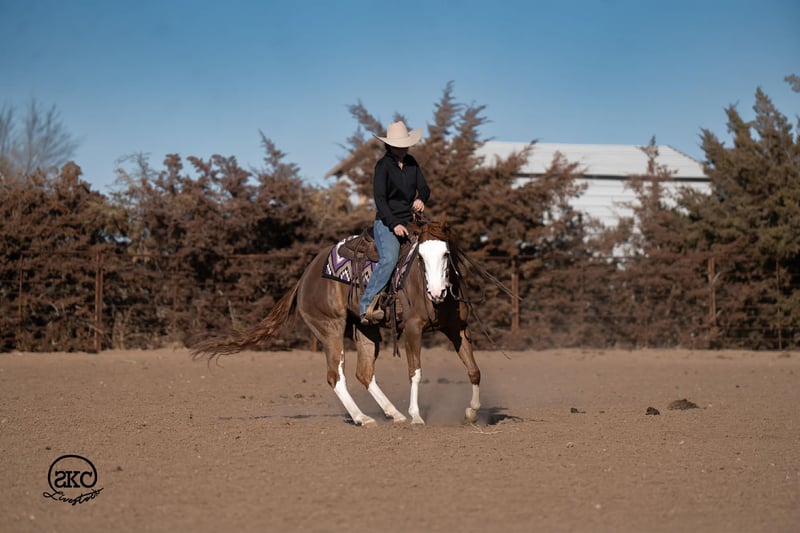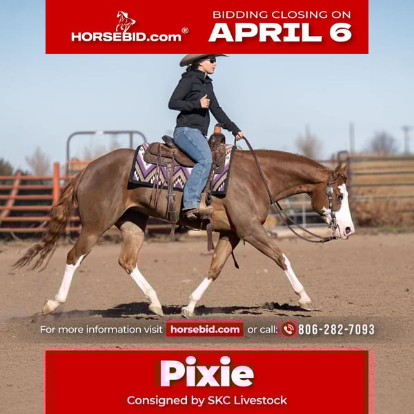 🌟𝑨𝒑𝒓𝒊𝒍 𝐀𝐋𝐋 𝐒𝐓𝐀𝐑 𝐋𝐈𝐍𝐄𝐔𝐏🌟 Happening now thru MONDAY | APRIL 6th - Available EXCLUSIVELY on HorseBid's website! For more details and to register visit: www.Horsebid.com CONSIGNOR CONTACT: SKC Livestock 806-282-7093 LOCATION: Canyon, TX BREED: Quarter Horse REGISTERED: Yes REGISTERED NAME: A Brown Eyed Girl COLOR: Sorrel HEIGHT: 15 AGE: 6 GENDER: Mare Allow us to introduce, A Brown Eyed Girl aka Pixie a gorgeous, double registered sorrel mare that has been successfully shown and has won money in the ranch classes. She has all the chrome and eye appeal you could possibly put on one and to top it off she was raised by Hilldale Farm. Pixie is sired by Heavy Duty Chex earner of over 140k and out of a daughter of the great Colonels Smoking Gun. Pixie is a beautiful mover and is broke to death. She has a stylish long trot, a nice jog and she circles pretty. This flashy lady spins both directions side passes both ways and is light in her face and says soft as butter. This is a horse you can leave off for any amount of time and not have to worry about she will stay the same quiet, kind and gentle ride on even the coldest stays. Pixie is an old soul and has been a favorite for our little ones and the more novice riders around our barn. We have rode Pixie outside extensively to both trail ride and to gather cattle, she crosses water, and rocky terrain with ease, she’s even quiet and safe to ride through our busy little town. Pixie has no spook or bad habits and is extremely versatile. We have tried hard to find her limits and just never seem to, she has a huge heart and a tremendous amount of try. We have rode her everyday possible, bareback, double, triple, English western heck we have even used her to pony some colts she never tells you no. Pixie has a sweet personality she likes people and likes attention but still has the perfect manners. This is truly a dream horse, please call us with any questions.