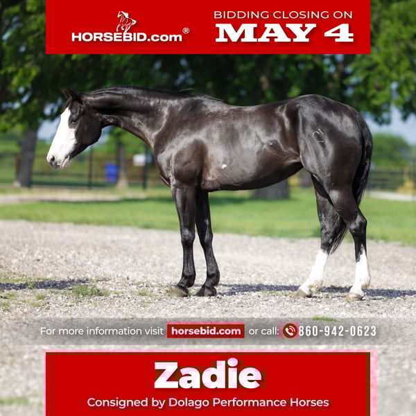 ▪️▫️◾️𝐭𝐡𝐞 𝑴𝒂𝒚 𝐒𝐞𝐥𝐞𝐜𝐭◾️▫️▪️ Happening now thru MONDAY | MAY 4th - Available EXCLUSIVELY on HorseBid's website! For more details and to register visit: www.Horsebid.com CONSIGNOR CONTACT: Dolago Performance Horses 860-942-0623 LOCATION: Ripley, OK BREED: QH REGISTERED: No COLOR: Black HEIGHT: 15 AGE: 6 GENDER: Mare Meet zadie a 6 yr old black mare standing at 15 hands weighing 1000 lbs! Check this lady out… great confirmation, solid clean legs, black coat with a bald face! They don’t get much prettier or sweeter than her! Zadie is an easy keeper who has a great demeanor and great personality! She’s easy to get along with horse wise and people wise, she wants to be in your pocket! Zadie is a solid great all around horse from the arena to the trails. She’s been trail rode many many many miles without ever taking a wrong step! She’ll walk through, over, and into anything without thinking twice! She handles everything with a great mind and no spook! She does excellent on long trail days and work days. She’s been used on the feed lot all day same as out in the wheat field! She side passes to open and shut gates, she’ll run one down, and not let one get by her! You can go use her in the feedlot for half a day and trail ride her the rest! She’s always ready to roll! In the arena she’s broke nice, she was started correctly. She has a nice stop with a great turnaround. She’ll walk trot and lope on a loose rein and just do her job. She’s great with her body and feet so it doesn’t take much to ride her! She’s always waiting for the next thing to do so don’t ever think you’ll tire her out! She shows great promise as a rope or barrel mare as well! She’s also been in parades, through town, hunting, fishing, drive throughs, and really will do anything for you! She is not mareish at all and minds her own business at all times! If you’re looking for a mare who can do it all while looking this good… you got yourself one!