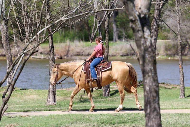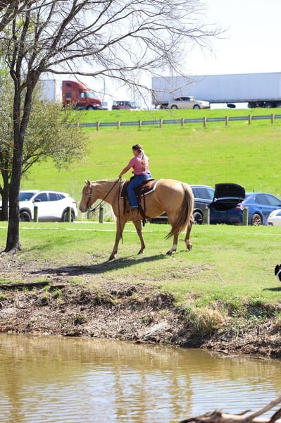🌟𝑨𝒑𝒓𝒊𝒍 𝐀𝐋𝐋 𝐒𝐓𝐀𝐑 𝐋𝐈𝐍𝐄𝐔𝐏🌟 Happening now thru MONDAY | APRIL 6th - Available EXCLUSIVELY on HorseBid's website! For more details and to register visit: www.Horsebid.com CONSIGNOR CONTACT: MM Ranch 469-318-1902 LOCATION: Forney, TX BREED: Quarter Horse REGISTERED: No COLOR: Champagne HEIGHT: 15 AGE: 6 GENDER: Mare Wow!! 🤩 Look at this one. Chandelier is a very unique champagne colored mare. She is a big beautiful girl standing 15 hands tall that is just 6 yrs old. Yes vet confirmed to be 6 yrs old. She is an excellent all around one for the whole family to ride and enjoy. •This girl is as classy and stunning as they make them. Plus she is a bombproof all around type anyone can ride. •Has all the fancy bells and whistles. Really can slide to stop and spin around if you ask her to. •She has an old soul, been-there-done-that personality that makes her the go-to for a quiet enjoyable ride. She is both well trained and well behaved in any scenario or discipline. She is quiet and soft to ride in or out of the arena, alone or in a group. Not at all skittish, jumpy or reactive yet sure-footed and nimble through coarse uneven terrain. She has a ground covering walk, a silky smooth jog, and a dreamy lope all on a loose rein or even no bridle at all! Not forward or pushy making her a terrific step up for a novice rider looking for a confidence builder or babysitter to show them the ropes! Very forgiving and patient both on the ground and under saddle. She rides English as well. She is ready to go show with endless potential to progress. She has enough of a handle to participate in local fun shows or 4H and also pull her weight around the ranch doing chores. Chandelier is no stranger to a hard days work and is a blast to use! Side passes to open and close gates, rides anywhere in the group, drug logs, crosses water, easy to catch wherever you find her, loads and hauls like a dream, stands tied quietly, great for the farrier. Chandelier is absolutely a favorite among everyone that meets her. I can not express enough how safe she truly is. This mare wants to please and wants to take care of her rider. She has zero and I mean zero bad habits. You will not get hurt around this mare. Did I mention how stunning she is. She is gorgeous thick made champagne colored mare. She has the shinny silkiest hair. She almost glows out in the sunlight. She is so beautiful. No warming her up before you get on to ride either. You can get on her fresh out on the pen and go. She is a super easy keeper too which is a big plus. She requires no maintenance of any kind. No special feed or supplements. She gets along great with other horses. She is not mean to other horses or marish. You can stall her or turn her out. Doesn’t matter to her. She sells 100% sounds with no issues. She did have a pre vet evaluation done by our vet which is included in the pictures. If you have anymore questions about her feel free to call. We would love to visit with you about her. We can help you arrange shipping anywhere. She is up to date on all vaccinations, worming, had her teeth checked, feet. She is ready to go to her new home to be loved and enjoyed. Don’t miss out on the one. These type amazing horses are sure hard to find.