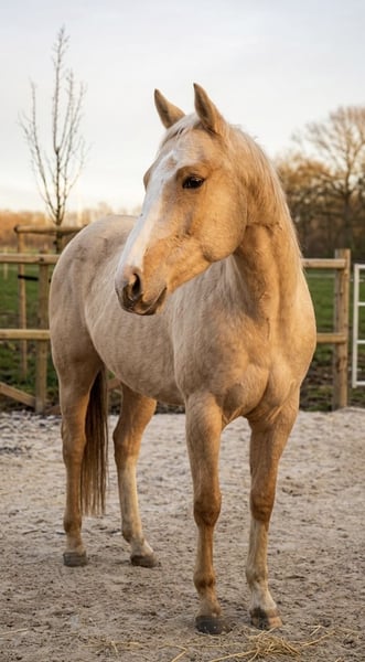 Te koop staat een prachtige 6-jarige Quarter Horse merrie in de gewilde kleur Palomino. Met een stokmaat van ongeveer 1,52 m is ze het ideale vrijetijdspaard voor ruiters die op zoek zijn naar een betrouwbare en evenwichtige partner. De merrie is volledig bereden en toont zich zowel op de piste als in het terrein altijd braaf, makkelijk in de omgang en goed handelbaar. Ze overtuigt door haar vriendelijke aard, haar zenuwsterkte en haar hoge leergierigheid – een echt betrouwbaar paard voor ontspannen buitenritten. Ze is hoefbevrij, regelmatig gevaccineerd en ontwormd, en verder gezond. Daarnaast beschikt ze over AQHA-papieren en is ze 5-panel NN getest. Laden gaat zonder problemen. Ze heeft goede papieren en haar stamboom bevat onder andere namen zoals Hollywood Dun It. Hij is een van de meest legendarische dekhengsten in de geschiedenis van de reining-sport en lid van de NRHA Hall of Fame. Het bloed van deze lijn wijst vaak op talent voor western disciplines zoals reining of working cow horse. Ook namen als Doc Chex en TC Sinatra komen voor in de stamboom en zijn bekend in de Quarter Horse fokkerij, die staat voor atletiek en een rustig karakter. Wij wensen haar een liefdevol nieuw thuis, bij voorkeur met paddockstallen, waar ze verder op een diervriendelijke wijze gehouden en gestimuleerd wordt. Bij serieuze interesse horen we graag van u voor een persoonlijk kennismakingsgesprek.
