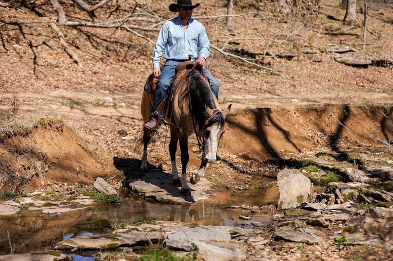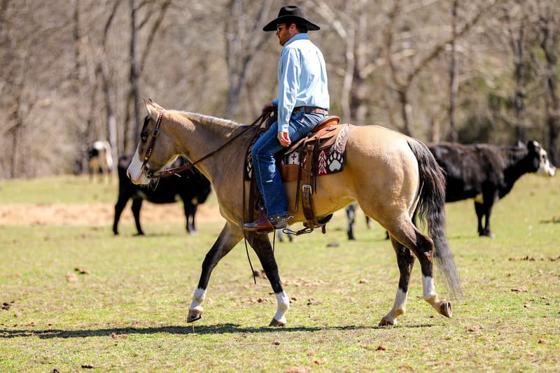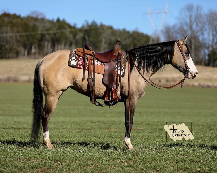 ONLINE AUCTION Place your bids at www.PlatinumEquineAuction.com Starting Bid $3500 Auction ends March 30th, 2025 Need a new saddle? Check out White Rock Saddles on our website or Facebook! Check out Miss Nevada!! Although this Buckskin beauty looks like she is competing for the Miss America crown she is ready to get down and dirty on the ranch or on the trails! Nevada is an adorable 15-15.1hh Quarter Horse mare that is 5 years old. This lady has done it all from roping out of the box to pasture roping. She has been hauled to team sortings and had 2 months of professional cutting training working on the flag. Nevada has been used daily on the ranch, she has sorted, doctored and rode fences. She has penned cattle at the sale barn and worked on a feedlot as well. This mare has a lot of handle and is one hand broke! She will really ride around and has all of the right moves! She lopes nice circles, takes her leads and has a good stop! She will cross creeks, ditches, logs and navigate rough rocky areas. She has been ridden many miles in the mountains and encountered every obstacle possible on the trail. Nevada is a do it all type of horse than anyone should appreciate! If you have any questions, would like to make a Buy It Now Offer or set up a Facetime Call, contact J & S Livestock JT 931-698-7159 Located in Santa Fe, TN. ONLINE AUCTION Place your bids at www.PlatinumEquineAuction.com Starting Bid $3500 Auction ends March 30th, 2025 Need a new saddle? Check out White Rock Saddles on our website or Facebook!