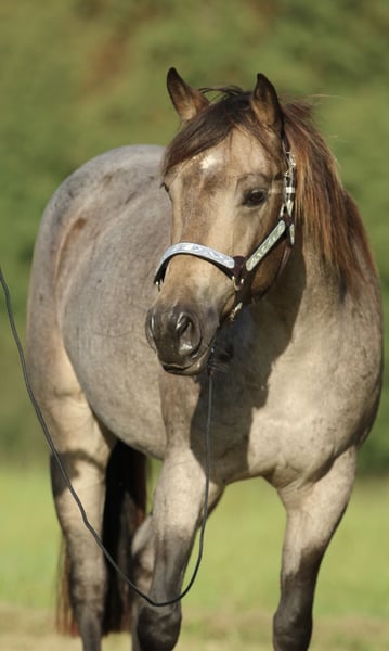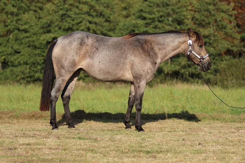 **Sales Advertisement: American Quarter Horse Mare** For sale is a lovable American Quarter Horse mare, born in 2019. This beautiful Buckskin-Roan mare stands at 148 cm and impresses with her charming character. She has been professionally trained in Reining and is completely relaxed in the field. With her balanced temperament and willingness to learn, she is suitable for both experienced riders and beginners. The mare is friendly in handling and sociable in the herd. With us, she has been well received with fresh semen and has a filly by IMA SPLASHY GANGSTER in Bay Roan at foot and is in foal by GUNSPARKS for 2026. The mare is 6 Panel N/N. If you are interested or have any further questions, please feel free to contact me.