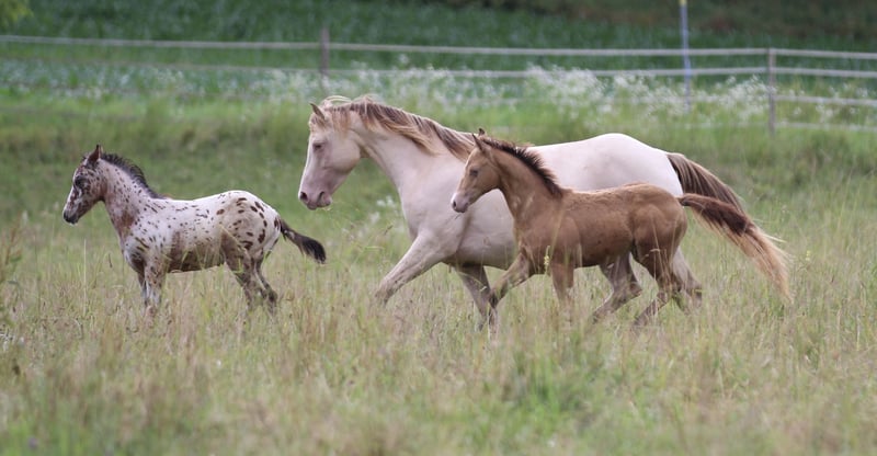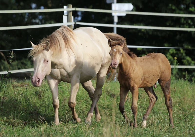 Rareté à la recherche d'une famille d'accueil de rêve ! Pour notre jument de reproduction Quarter Horse au grand cœur, Cowboys First Kizz alias Izzy, nous cherchons la meilleure famille. Elle est une mère exceptionnelle, produisant des foals magnifiques avec de jolis têtes, un caractère adorable et une conformation parfaite ! Et cela, bien sûr, avec la garantie de couleur CHAMPAGNE ! Izzy est très facile à manipuler, connaît le travail à la longe et a été légèrement monté avant sa deuxième naissance. Elle n’a pas été particulièrement entraînée pour la compétition en raison de son statut de jument de reproduction – ce qui lui convient parfaitement, puisqu’elle s’épanouit à 100 % dans ce rôle, et tout se passe sans souci, de la saillie à la naissance. Elle vit en liberté sans fer, en paddock avec d’autres juments reproductrices et leurs poulains. Elle s’occupe également avec amour de la croissance d’autres poulains. Vous avez ici une occasion unique d’acquérir un véritable joyau pour la sélection de base du Quarter Horse ! Non saillie pour 2026.