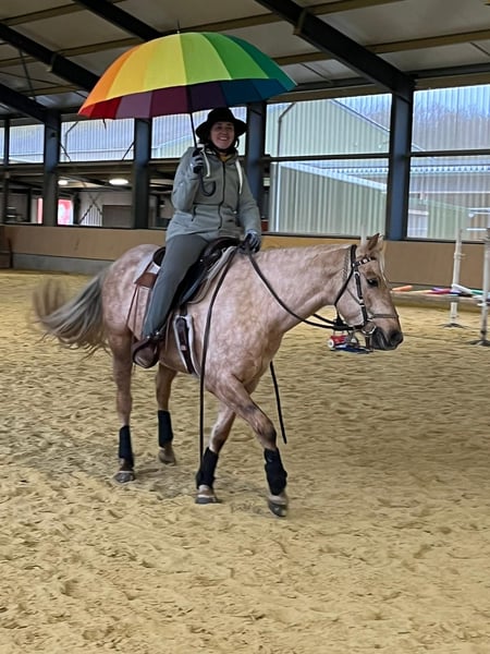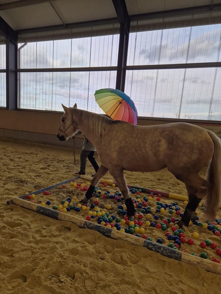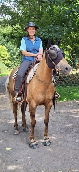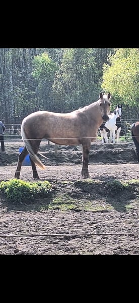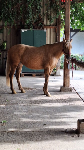 With a heavy heart, I have decided to sell Tessa. She is a 6-year-old mare standing 1.52 meters tall. I started riding her at the age of four and have given her plenty of time to mature. Initially, she was used as a lead horse in the field, later ridden alone or in a group. She was intended to become a trail riding horse. Unfortunately, I have to admit that she doesn’t feel very comfortable outdoors. She is often quite curious and sometimes skittish when out riding. Tessa feels more at ease in the indoor arena or on the riding pad. Everything is familiar to her there, and she works very well with her rider. She also handles extreme trail challenges and calmness training very motivatedly. I imagine a rider who enjoys competing in disciplines like trail riding, ranch riding, or mounted games would suit her well. She is easy to load alone. Tessa is barefoot (with hoof boots in the terrain), healthy, regularly dewormed, osteopathically checked, with her teeth done, and vaccinated against tetanus, equine herpesvirus, influenza, and West Nile virus. She is familiar with both box stall and open stable environments. She is very social within a herd but also assertive when needed. Tessa is a wonderful horse – but unfortunately, we are not the right match. She has a pedigree but no official papers. It’s important to me that she finds a suitable new owner. For inquiries, please contact me by phone at 0170 - 2931407.