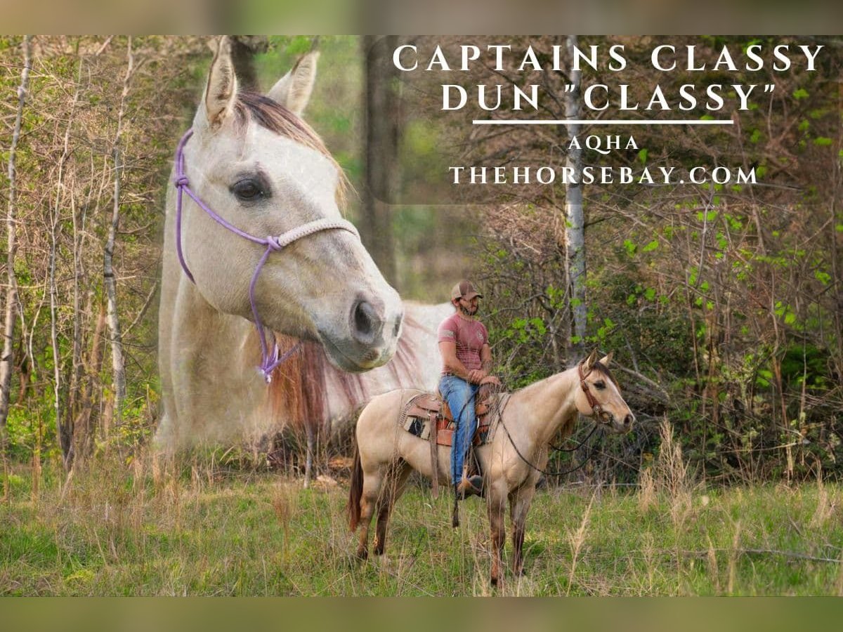 OPEN BIDDING ON THEHORSEBAY,COM. SALE ENDS ON 05/07 More information is available on the website, including an UTD vet inspection, Coggins, video, images, and the owner's contact information to ask questions, request information, or make arrangements to come to visit. CLASSY as we call her, has more class than a school. Gorgeous, American Quarter Horse Mare, Dunskin color, built right, and looks great. Easy keeper and utd on everything. Very personable mare, with 100s of miles of trails behind her and always enjoys going. She has played at the Saddle Club and 4-H Club, been in parades, and completed some mounted patrol training. She will go anywhere you point, through water, and over rough terrain. Traffic safe and non-spooky. Notice her beautiful, unique, tipped ears and tiger-striped legs. Would also make a good color-producing broodmare. You’d be hard pressed to find a prettier more Classy Mare.