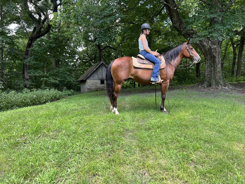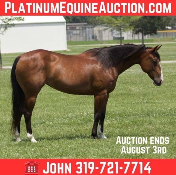 ONLINE AUCTION Place your bids at www.PlatinumEquineAuction.com Starting Bid $3500 Auction ends August 3rd, 2025 Need a new saddle? Check out White Rock Saddles on our website or Facebook Fancy, 7-year-old | 14H | Bay Quarter Pony Mare. Fancy is a gorgeous 14-hand bay Quarter Pony with three white socks and a long, thick black mane and tail. She is exceptionally gentle, quiet, and safe for the whole family. Fancy is a seasoned trail partner—traffic safe and unbothered by tractors, semis, motorcycles, or trains. She’s been around cattle, sheep, goats, and even ridden through a game reserve among wild animals. Fancy has no spook, crosses water, ditches, logs, and obstacles with confidence, and she’s parade broke—even had fireworks and gunshots go off around her on the 4th of July. She stands great for the farrier, loads and hauls like a pro, and has no bad habits. Whether stalled or turned out, she gets along well with others. UTD on all vaccinations and worming. 100% sound and ready to ride. Call John McPhail 319-721-7714 with any questions. ONLINE AUCTION Place your bids at www.PlatinumEquineAuction.com Starting Bid $3500 Auction ends August 3rd, 2025 Need a new saddle? Check out White Rock Saddles on our website or Facebook