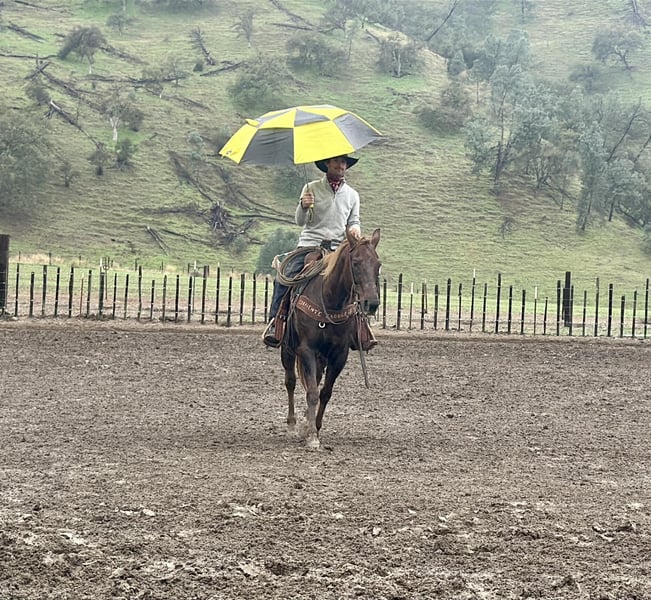 ONLINE AUCTION Place your bids at www.PlatinumEquineAuction.com Starting Bid $3500 Auction ends January 18th, 2026 Need a new saddle? Check out White Rock Saddles on our website or Facebook Mary Poppins Practically perfect in every way Yes, that Mary Poppins. And just like her name suggests, this mare floats in with good manners, a cheerful attitude, and absolutely no drama. She’s a 8-year-old chestnut mare standing 14.3 hands, with a gorgeous flaxen mane and tail and a personality that’s even sweeter than her looks. Mary Poppins is the kind of horse that makes you smile before you even tighten the cinch. She’s kind, gentle, and genuinely tries her heart out. Youth riders and beginners adore her because she’s calm, steady, and forgiving. She’s light to her cues, easy to steer, and never in a hurry to get anyone in trouble. Her lope is smooth and comfortable, her stop is easy, she turns willingly, and she neck reins quietly like a proper lady. Safety is her superpower. Mary Poppins works around cattle without batting an eye and stands quietly at branding like she’s been nannying cowboys her whole life. On the trail, she’s confident and relaxed. Narrow paths, brush, water crossings, uneven ground—no fuss, no spook, no opinions. Just point her umbrella… we mean reins… and go. She’s been exposed to just about everything: flags, tarps, umbrellas (of course), tires, bridges, pool noodles, and more. New situations don’t rattle her. She’s traffic-safe, rides quietly down the road, and handles everyday chaos with the calm confidence of a mare who’s truly seen it all. On the ground, she’s equally magical. She ties patiently, loads and hauls like a dream, and rides the same in new places as she does at home. No surprises, no mood swings, no nonsense. She’s the kind you trust, recommend, and brag about. If you’re looking for a safe, dependable, and fun mare that can babysit the kids, carry beginners, and still step up and do a job when asked, Mary Poppins is practically perfect in every way. Sweet, honest, and endlessly enjoyable, she’s the kind of horse families hold onto for years. Located in Paicines, California 📞 Contact Longhorn Ranch – Dina 831-537-1915 Nationwide shipping available through reputable haulers. ONLINE AUCTION Place your bids at www.PlatinumEquineAuction.com Starting Bid $3500 Auction ends January 18th, 2026 Need a new saddle? Check out White Rock Saddles on our website or Facebook
