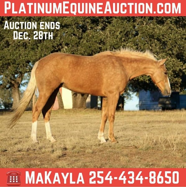 ONLINE AUCTION Place your bids at www.PlatinumEquineAuction.com Starting Bid $3500 Auction ends December 28th, 2025 Need a new saddle? Check out White Rock Saddles on our website or Facebook Dualin Jose Cuervo— Flower is an exceptionally gentle and reliable trail horse, that’s 7 years old. She is standing 14.3 hands tall. She’s not only striking in appearance with her beautiful papers to prove her pedigree, but she’s also incredibly calm and steady, making her a perfect partner for riders who want a gentle and enjoyable experience on the trail. Whether you prefer riding bareback or in the saddle, Flower moves smoothly and patiently, always looking out for her rider’s comfort and safety. Flower has a super fun lope making it easy to lope small or big circles. She has plenty of experience out on the trails, having been used for checking cows, fixing fences, and leisurely rides around the ranch. She handles various trail obstacles with ease. Water crossings, rocky paths, or wooded areas – Flower takes it all in stride. Flower’s kind nature means she stays calm around new sights and sounds, so you can feel confident exploring different terrains with her. She’s the kind of horse that will take care of you, making every ride relaxing and stress-free. If you’re searching for a trustworthy, gentle mare to accompany you on all your trail adventures, Flower is the perfect match. Come see her for yourself or we can schedule aFaceTime to meet him! Call or text Makayla with MW Horses at 254-434-8650. Need hauling? We got a list of reliable haulers around the US! Don’t miss out on this amazing opportunity to add a truly special horse to your home! Located in Poolville, TX. ONLINE AUCTION Place your bids at www.PlatinumEquineAuction.com Starting Bid $3500 Auction ends December 28th, 2025 Need a new saddle? Check out White Rock Saddles on our website or Facebook