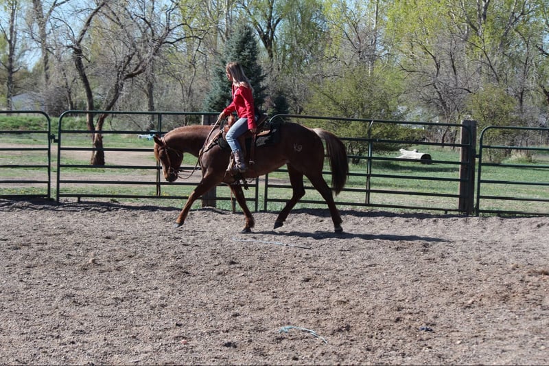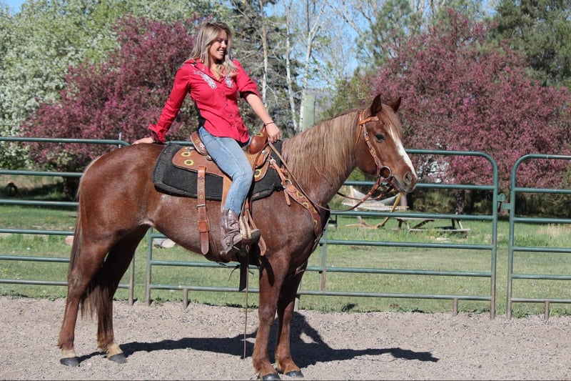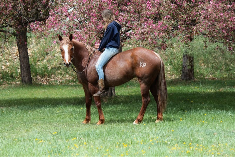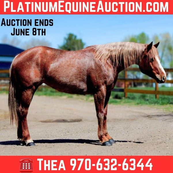 ONLINE AUCTION Place your bids at www.PlatinumEquineAuction.com Starting Bid $3500 Auction ends June 8th, 2025 Need a new saddle? Check out White Rock Saddles on our website or Facebook! Rose (registered name A Frosted Invitation) is an absolutely stunning red roan 2018 model mare with an impeccable set of papers and an even more impressive head on her shoulders. Rose is 15.2, built like a tank, has amazing confirmation and a beautiful mane and tail! This mare is easy to be around, has amazing ground manners, is first one to meet you at the gate, LOVES people and is great for the vet and farrier! Rose will stand tied all day, loads like a queen, stands for baths and tacking, picks her feet without a problem and loves being brushed and loved on. Rose has an impressive western pleasure jog and lope, works off of your legs, stops off of your seat and voice and knows all of her voice commands. Rose opens and closes gates, side passes, spins and has a quick and smooth rollback. Rose is one of the prettiest movers in the western pleasure pen! She is very slow and delicate with an amazing collection. Rose has also been trail ridden extensively and loves being out and about, she has been in town with lots of traffic and commotion or up in the mountains on hard trails and steep terrain- whatever you throw at her- she’s up for the task. Rose rides out in a group or alone and doesn’t care where she is in the pack. Rose has carried a flag, walked over tarps and tires, had balls thrown at her and dealt with a lot of chaos and commotion with ease. Rose had done basic English work as well and absolutely loves it, she knows where her feet are for the cavaletti, has had extensive feet work and even done some hunter jumper as well as been over a couple of cross country courses! (Which she absolutely adored) and has not missed or dodged a jump!! She has a lot of tuck and scope and could go extremely far in that world with some consistency. For more info contact Dynamite Horses Thea 970-632-6344 with any questions. Located in Fort Collins, CO. ONLINE AUCTION Place your bids at www.PlatinumEquineAuction.com Starting Bid $3500 Auction ends June 8th, 2025 Need a new saddle? Check out White Rock Saddles on our website or Facebook!