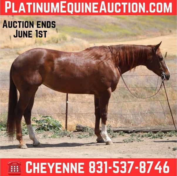 ONLINE AUCTION Place your bids at www.PlatinumEquineAuction.com Starting Bid $3500 Auction ends June 1st, 2025 Need a new saddle? Check out White Rock Saddles on our website or Facebook! If her pictures didn’t make you look twice, her video will! Berta is a drop dead gorgeous 15.3HH mare. She is built perfectly in every way! She has the brains, beauty, and ability to be anyone’s dream horse. At just 7 years old, Berta has her whole life to spend with you! She was professionally started in the natural horsemanship, and western pleasure world. Berta is a gorgeous mover, she floats across the arena beautifully in her gaits and transitions. She has a very natural level, low head set and is very easy to cue. She has perfected her circles in the arena and glides softly around in all her gaits. She responds nicely to leg cues, and moves very softly in the bridle. Even though Berta has spent most her early years in the arena she has become a veteran trail companion is such a short about of time! She is confident and comfortable out on the long mountain trails. She has been rode all over the bay areas national parks, that are very crowded with hikers, wildlife, and bikers! She has seen many miles of trails, steep and narrow! She crosses bridges, rides without hesitation through rushing creeks, and will go over any downed object in her path! Berta is safe! She doesn’t get “fresh”, you cannot ride her for long periods of time and she will act like you never skipped a day! She doesn’t have a mean bone in her body. She takes in everything new like a pro and is always willing and obedient. Berta is such a special mare and is always happy to see you! She is such a sweet, loving mare with the best in your pocket personality! She is patient and stands tied waiting for you. Berta loads easily and hauls quietly, she clips, bathes and picks her feet up no problem! Berta is stunning in every way and has endless possibilities for her new owners! For more info or to schedule a time to come see her. Please contact Cheyenne Rey 831-537-8746. She is located in Bitterwater, CA. ONLINE AUCTION Place your bids at www.PlatinumEquineAuction.com Starting Bid $3500 Auction ends June 1st, 2025 Need a new saddle? Check out White Rock Saddles on our website or Facebook!