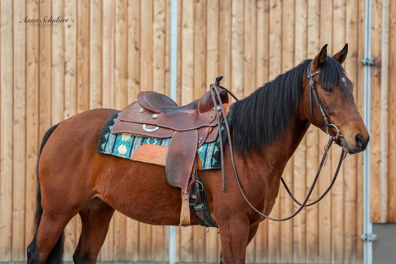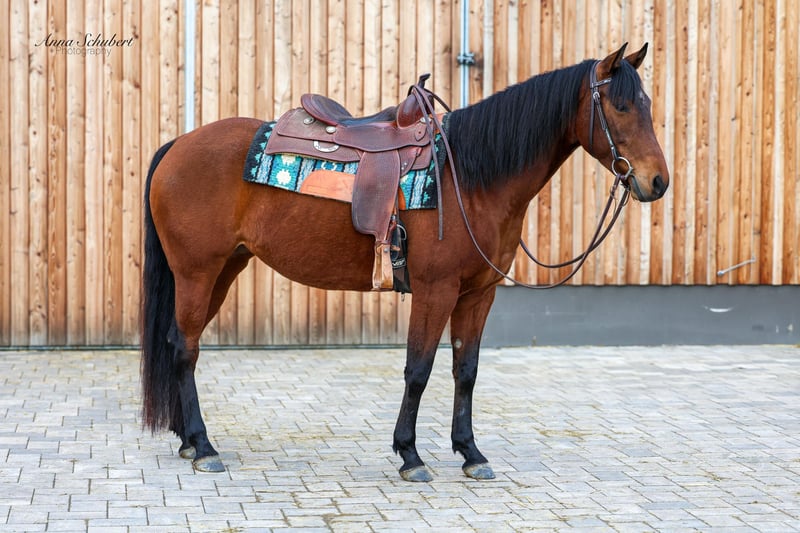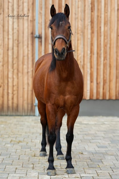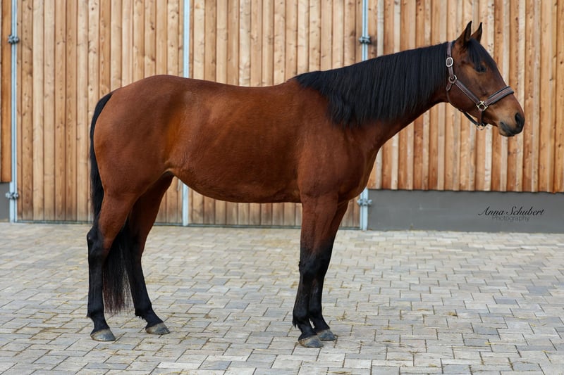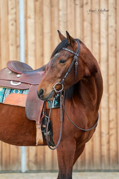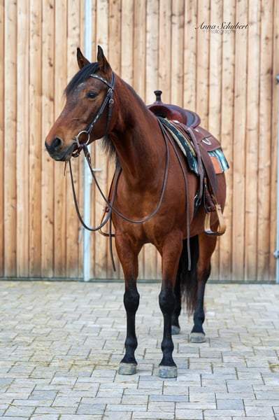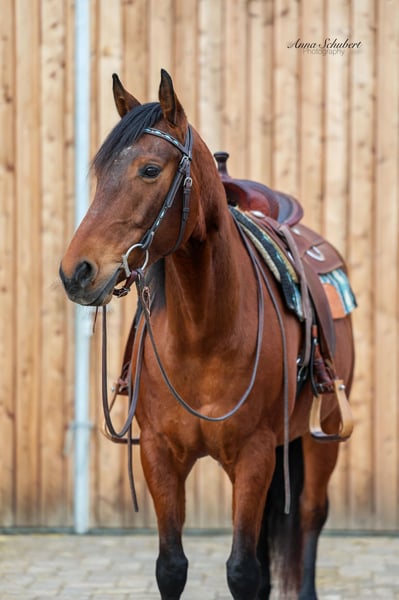Zum Verkauf steht eine 8-jährige Quarter Horse Stute, die mit Ausdruck und Vielseitigkeit überzeugt und weiter gefördert werden möchte. Stockmaß: 160cm – schlank gebaut Bewegung: tolle ausdrucksstarke, qualitative Gänge Charakter: unkompliziert brav im täglichen Umgang Ausbildung: solide Grundausbildung, geht brav in der Halle und sowohl alleine als auch zu zweit ins Gelände barfuß, sie kennt Box und Offenstall/Weidehaltung Kaylee ist sehr lernwillig und arbeitet gerne jeden Tag mit den Menschen. Entweder vom Boden oder im Sattel. Sie eignet sich besonders für einen feinen, erfahrenen Reiter, der ihr Sicherheit und Vertrauen vermittelt. Wir sehen sie im Freizeitbereich, aber sie zeigt auch Talent für Stangen und Ranch Riding. Für weitere Infos schreibt uns gerne eine Nachricht oder ruft an 0160/94486301 Der Verkauf erfolgt im Kundenauftrag.