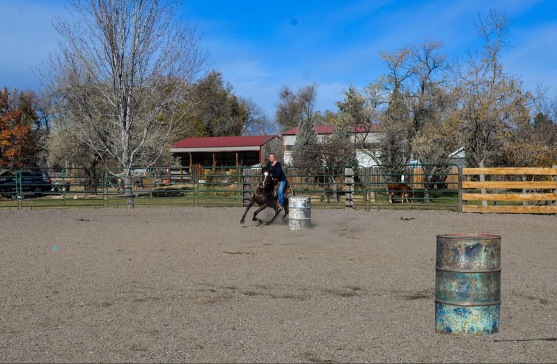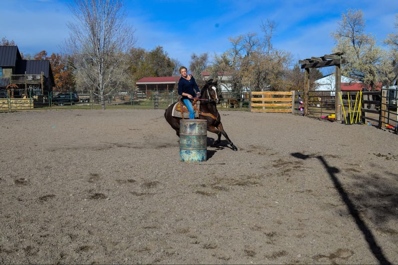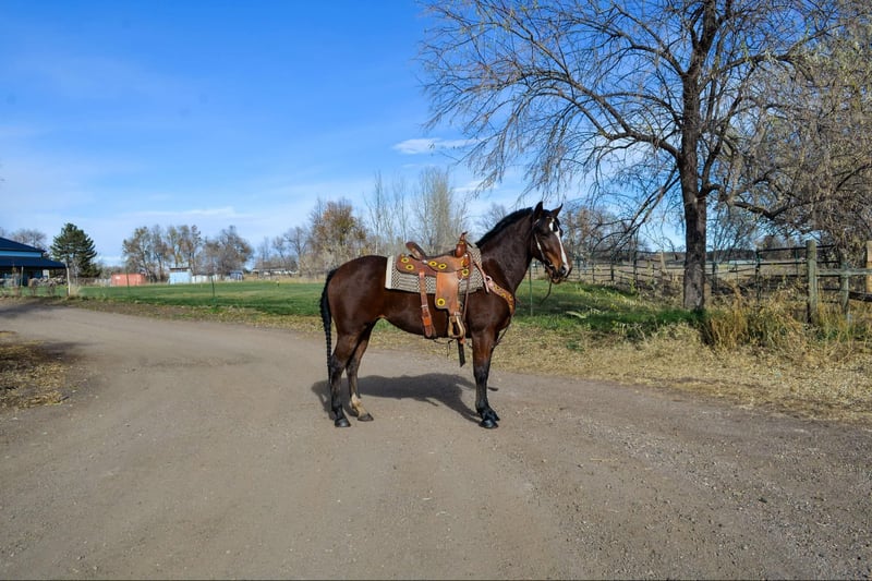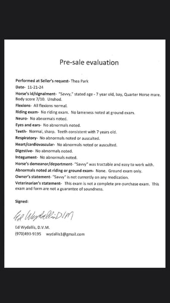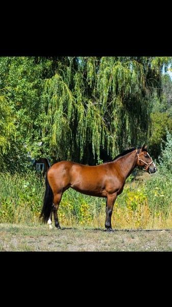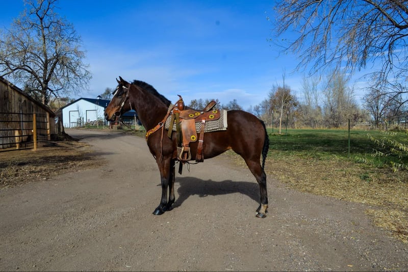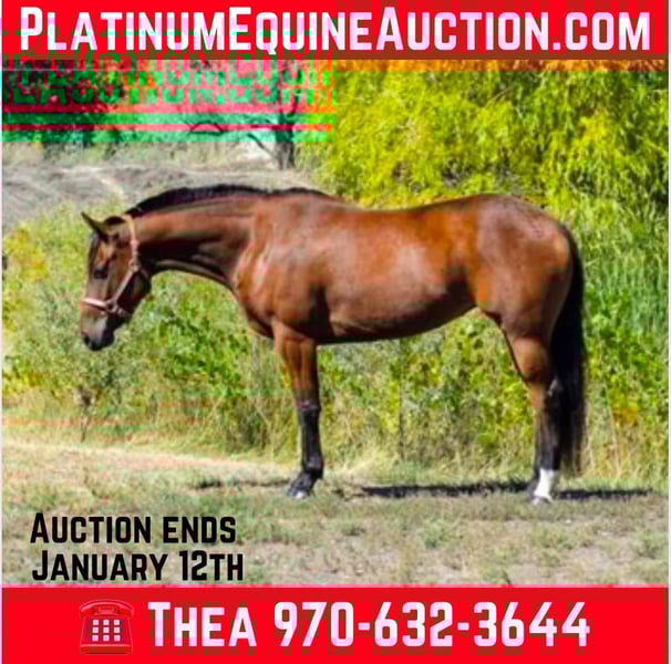 ONLINE AUCTION Place your bids at www.PlatinumEquineAuction.com Starting Bid $3500 Auction ends January 12th, 2024 Need a new saddle? Check out White Rock Saddles on our website or Facebook! Savvy is an absolute genius, an exceptionally quick and talented mare who never misses a beat and loves any job you throw her way. She is a 7 year old bay mare that is standing 14H. This impressive horse has a finished barrel and pole pattern and excels at all the games, She’s been roped off of, will drag a cow, and can cut anything you put in front of her. Not only is she a pro in Western disciplines, but Savvy has also been ridden English. She has a nice collection and excellent body awareness, making her incredibly versatile. She would make an outstanding drill team horse with her high endurance, light footwork and fearless nature. We’ve thrown tarps, flags, parachutes, and more at her without any issues. Savvy has also been on several trail rides and is one of our top mountain horses, capable of going all day and still being ready for more. She’s sure to excel at whatever job you give her. Come check her out and see for yourself the incredible potential she has to offer! Located in Fort Collins, CO. Contact Dynamite Horses Thea 970-632-3644 with nay questions. ONLINE AUCTION Place your bids at www.PlatinumEquineAuction.com Starting Bid $3500 Auction ends January 12th, 2024 Need a new saddle? Check out White Rock Saddles on our website or Facebook!