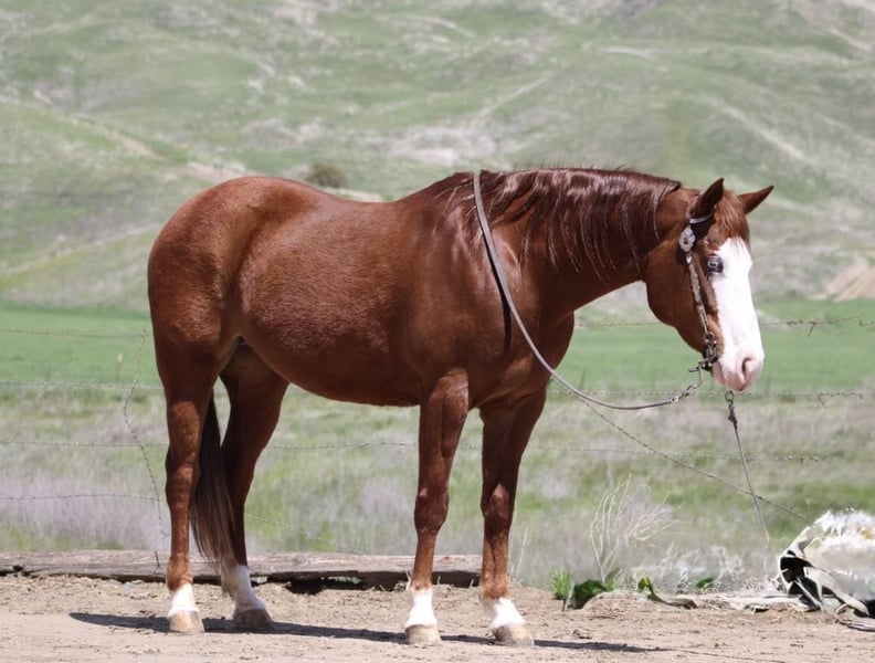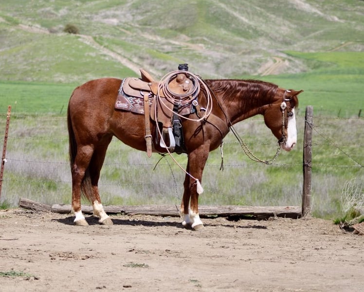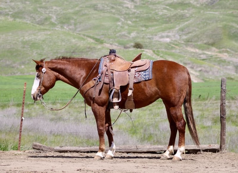 ONLINE AUCTION Place your bids at www.PlatinumEquineAuction.com Starting Bid $3500 Auction ends April 20th, 2025 Need a new saddle? Check out White Rock Saddles on our website or Facebook! A Spicey Lil Gun: The Rare Find Everyone is Looking For. When it comes to finding the perfect horse, there are a few characteristics that every rider looks for. A calm demeanor, natural ability, and a willingness to take on any challenge are just a few of the qualities that make up an ideal equine partner. And with this AQHA 2017 sorrel mare, standing at 14.3 you can rest assured that you have found all of these traits in one beautiful package.Lilly’s lineage alone is enough to make any horse enthusiast swoon. With the highly sought after bloodlines of Colonel Smoking Gun and Smart Little Lena running through her veins, she truly is a gem among horses. But what sets her apart even more is her stunning bald face, four whits sock and piercing blue eye – making her a show stopper wherever she goes.But don’t let her striking appearance fool you – Lilly’s true beauty lies within her sweet and kind nature. She naturally rides low headed and collected, effortlessly picking up leads and navigating precise circles in the arena. Her calm demeanor makes her a pleasure to be around both on the ground and under saddle.And when it comes to her training, Lilly has all the “cool buttons” any rider could ask for. Soft supple movements come naturally to her as she performs flawless turnarounds and stops. She has been extensively used on ranches where she has proven herself as a reliable partner to gather in rough terrain while remaining sure-footed at all times. She has branded and sorted cattle and has been started on the sled steer she would make a fantastic heel horse. But Lilly isn’t just limited to ranch work – she excels in other disciplines as well. From trail obstacle courses to parading around town , this mare takes everything in stride with her willing attitude. Whether it’s crossing bridges or navigating narrow trails ,walking through water or wildlife, nothing fazes this girl. In addition to being versatile under saddle, Lilly also possesses impeccable manners on the ground. She stands patiently for grooming sessions and tacking up, clips without issue, and is good for the farrier. She has also been exposed to various environments and situations, making her comfortable in both stall and pasture settings. And for those looking for a horse to accompany them on overnight camping trips or scenic trail rides, Lilly is the perfect companion. She has been high-tied without any issues and is not bothered by new surroundings. Her calm demeanor makes her an ideal choice for any rider – whether you’re a beginner or experienced equestrian. If you’ve been searching for that all around horse who truly has it all, look no further than Lilly. With her stunning looks, impeccable training, and sweet personality, she truly is a dream come true. So why wait? Contact Longhorn Ranch Dina at 831-537-1915 today and come meet your dream girl in Paicines, California. Trust us – you won’t be disappointed! ONLINE AUCTION Place your bids at www.PlatinumEquineAuction.com Starting Bid $3500 Auction ends April 20th, 2025 Need a new saddle? Check out White Rock Saddles on our website or Facebook!