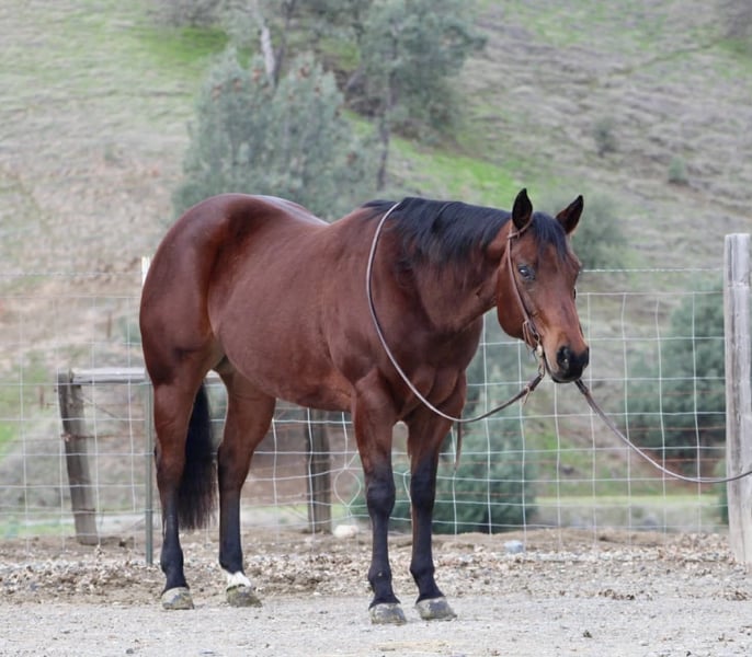 ONLINE AUCTION Place your bids at www.PlatinumEquineAuction.com Starting Bid $3500 Auction ends January 18th, 2026 Need a new saddle? Check out White Rock Saddles on our website or Facebook JUST CALL ME DELIGHT 2017 APHA • 15 hands • Stout-made bay mare Dependable. Pretty. Easy to get along with. If you’re searching for a mare that’s trustworthy, well put together, and nice to look at, here she is. Delight is the kind of horse that makes the search worth it. She’s not loud or over-the-top. She’s simply a really good mare in every sense of the word. She’s a rich bay with a soft, kind expression and a strong, balanced build. There’s a quiet confidence about her that people notice right away. She stands out without trying and leaves a good impression wherever she goes. Delight is easy to live with and even easier to enjoy. She stalls or pastures quietly, stands well to tack, bathes without fuss, and hauls calmly. No quirks, no attitude, no added work. She’s the kind of horse that fits into your routine instead of changing it. Under saddle, she’s smooth, relaxed, and honest. In the arena, she keeps a steady rhythm, moves willingly forward, and flows through her gaits comfortably. She’s uncomplicated and forgiving, making every ride pleasant and stress-free. Outside the arena, Delight stays just as sensible. She’s been used on the trail and in ranch settings, where she crosses water, handles obstacles, works through brush, and navigates uneven ground with ease. She’s helped gather and stays focused and level-headed while doing her job. Her pedigree brings depth to an already solid foundation. By My Dakota Choice and out of Miss Dazzling Design, with influence from Docs Shady Blue and Heza Winning Design, she comes from bloodlines known for producing capable, good-minded horses. That quality shows in how she thinks and handles new situations. Delight truly earns her name. She’s pleasant to be around, comfortable to ride, and the kind of mare you appreciate more with every ride. A solid, dependable horse that’s as enjoyable in the barn as she is under saddle. Located in Paicines, California Nationwide shipping available with reputable haulers 📞 Contact Longhorn Ranch – Dina 831-537-1915 ONLINE AUCTION Place your bids at www.PlatinumEquineAuction.com Starting Bid $3500 Auction ends January 18th, 2026 Need a new saddle? Check out White Rock Saddles on our website or Facebook