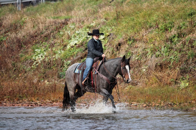 ⚜️ 𝓽𝓱𝓮 𝐇𝐨𝐫𝐬𝐞𝐦𝐚𝐧'𝐬 𝓢𝓱𝓸𝔀𝓬𝓪𝓼𝓮⚜️ Happening now thru MONDAY | DECEMBER 1st - Available EXCLUSIVELY on HorseBid's website! For more details and to register visit: www.Horsebid.com CONSIGNOR CONTACT: Wagner Farms 814-564-2117 LOCATION: Clarion, PA BREED: QH REGISTERED: Yes REGISTERED NAME: Buenos Tres Marias COLOR: Blue Roan HEIGHT: 15.1 AGE: 8 GENDER: Mare Buenos Tres Marias is a Registered 8 Year Old Blue Roan Mare. Her barn name is Denim and Denim is a barn favorite. She is a total sweetheart to be around and loves attention!! Denim is really good broke to ride but she is also very quiet, laid back, gentle and safe to ride making her suitable for the whole family, all types of riders and timid riders. We have been trail riding her and arena riding her and she wears a ranch brand on her hip. Denim has had professional training and has a nice one hand neck rein , good stop , back up , side pass and nice head set. She is a great trail horse! Will go anywhere you point her and never hesitate . Over the logs, thru the mud and across the water. Very seasoned on the trails. She is very well broke but one of my favorite things about her is how easy and not complicated she is to ride. She makes riding stress free and fun! She has great bloodlines too. Let her sit long periods of time without being ridden and she will stay good broke and gentle. She doesn't need to be ridden often to stay gentle. She is the whole package and the kind of horse that is hard to find. Dont Miss Out On Her! Call or Text Glory at 814-564-2117. Thank You and God Bless