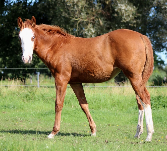 **For sale: Beautiful American Quarter Horse mare** For sale is a promising American Quarter Horse & American Paint Horse mare, born in 2025. Her talent in reining is particularly noteworthy. She already shows great potential and is ideal for ambitious riders who want to be successful in western sport. Her even temperament and willingness to learn make her an ideal partner for training and competition. If you are looking for a talented youngster with the best prospects in reining, then this mare could be just the right choice for you. If you are interested, we look forward to hearing from you to give you more information and to arrange a viewing. www.white-diamond-horses.de