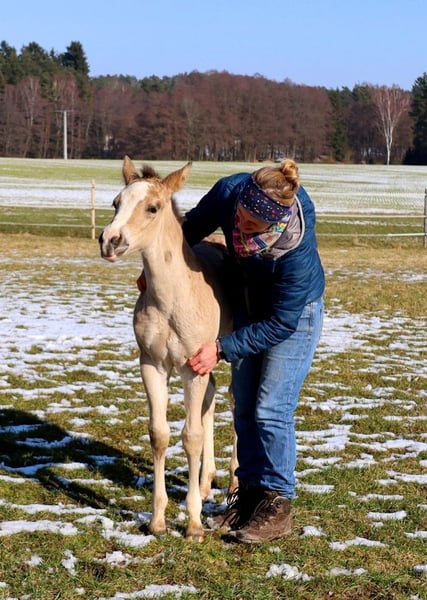 GOTTA LOPIN LUCINDA, urodzona 26.01.2026, buckskin Na tym naszym pastwisku „Liz Gotta Gun“ (Lisbeth) i „Blackberry“ stworzyli naprawdę słodką klaczkę urodzoną z miłości – można tylko powiedzieć, że ta krycia była idealna. „Lucinda” odziedziczyła po rodzicach wszystkie pozytywne cechy: poprawną budowę ciała i ustawienie kończyn, dużo uroku i charakteru, potencjał ruchowy, a z pewnością będzie niezawodnym partnerem do jazdy, tak jak jej rodzice, co z pewnością sprawi, że miłośnicza jazdy rodzina będzie z niej bardzo zadowolona. Będzie także doskonałym koniem do jazdy w reiningu i klasach ranch horse, takich jak Ranch Riding, Ranch Trail, Ranch Rail, a także w sportach wszechstronnych. O tym świadczy także jej rodowód, w którym znajduje się wiele wysokiej klasy reproduktorów i legend hodowli Quarter Horse, takich jak Hollywood Dun It, Grays Starlight, Smart Little Lena, Continental King i King P-234. Dokumenty AQHA są dostępne online, a wkrótce zostanie ona oznakowana chipem i otrzyma paszport DQHA wraz z zaświadczeniem hodowlanym. Oboje rodzice przeszli test 5-panelowy oraz test IMM/MYH1. Jak wszystkie nasze źrebięta, dorasta w stadzie z rówieśnikami i innymi końmi, pod opieką doświadczonych wychowawców. Regularne odrobaczanie i wizyty u kowala są u nas standardem. Przy sprzedaży zapewniamy ubezpieczenie na życie wraz z zaświadczeniem lekarskim o stanie zdrowia. Koszty i ryzyko pozostają u nas do momentu przekazania – czyli do końca 6. miesiąca życia. Na życzenie i na koszt kupującego możliwa jest wpłata na program Futurity NRHA i NSBA (od tego roku dostępne) oraz program młodych koni EWU. Jej rodzice i kilka półbraci są dostępni do obejrzenia na naszej farmie. Na ostatnich zdjęciach widać jej rodziców. Tel. 0170/4443194 Więcej zdjęć i informacji na stronie www.goetz-quarterhorse.de